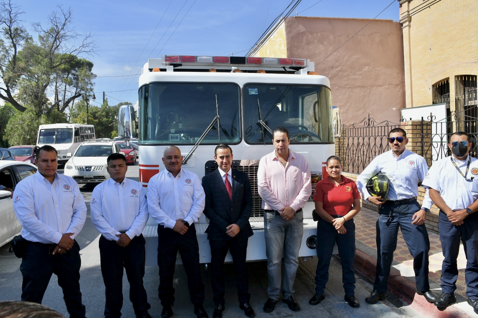 El presidente municipal fue acompañado por Alejandro González Farias, secretario del ayuntamiento; Francisco Sánchez Aguirre, director de Protección Civil Municipal; Alejandro López Siller, presidente del patronato de Bomberos Region Sureste; José Antonio González Martínez, presidente del Comité Local de Ayuda Mutua en Ramos Arizpe y por Mario Ricardo Hernández Saro