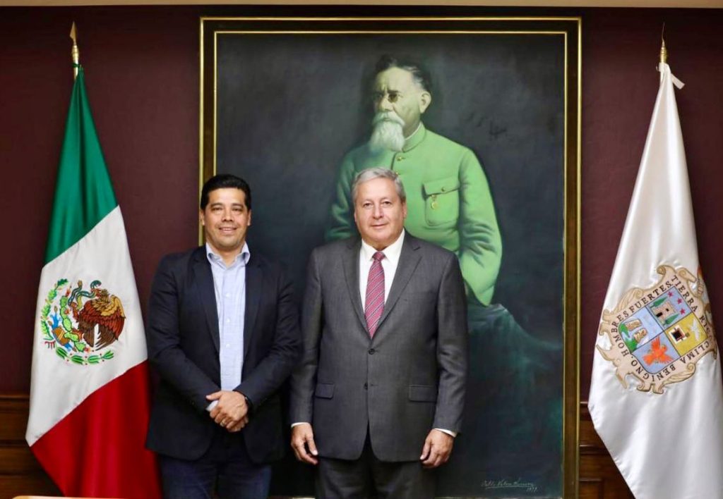 El alcalde de Saltillo, José María Fraustro Siller recibió en la Presidencia Municipal a su homólogo de Aguascalientes, Leonardo Montañez Castro, con el objetivo de compartir buenas prácticas en el manejo del agua y el funcionamiento del organismo operador, Aguas de Saltillo.