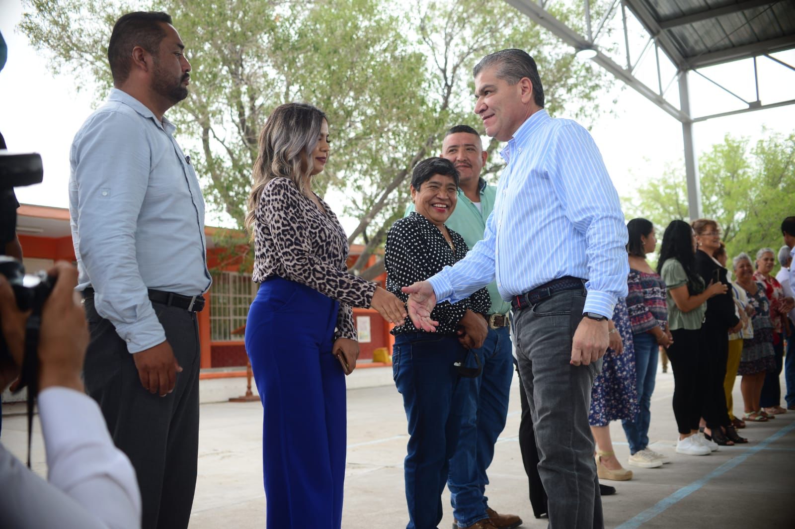 Posteriormente, el gobernador Miguel Riquelme acudió a las instalaciones de la Secundaria General “Venustiano Carranza”, donde realizó el corte de listón inaugural de la techumbre estructural, con una inversión estimada en 2 millones de pesos, beneficiando a 258 alumnos.
