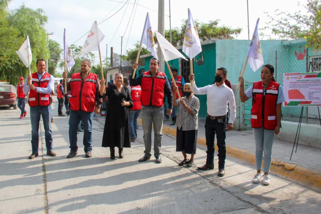 En Ramos Arizpe, el alcalde José María Morales Padilla, dio inicio al programa de embellecimiento de fachadas “Enchúlame la Casa” en las colonias La Palma y Anacahuita, acompañado del Secretario de Desarrollo Social, Tomas Gutiérrez Merino; del Director del programa, Edgar Tamez Garza y de la Directora de Programas Sociales, Dulce María Pérez Espinoza.