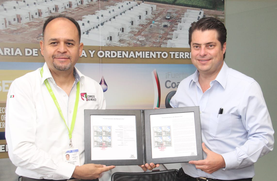 A nombre del Gobierno de Coahuila, el Secretario de Vivienda y Ordenamiento Territorial (SEVOT), Enrique Martínez y Morales, canceló la Estampilla Postal por el “75 Aniversario del Banjército”, ante directivos del Servicio Postal Mexicano (SEPOMEX).