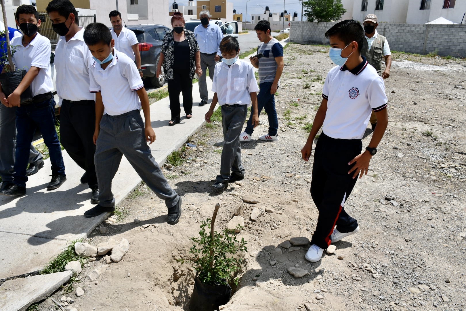 Alumnos, maestros y directivos de la Escuela Secundaria No. 97 “Manuel H. Gil Vara” ubicada en la colonia Parajes de los Pinos en Ramos Arizpe, en coordinación con la Fundación Impulso A.C. y la Cámara Nacional de Comercio (CANACO) Ramos Arizpe, sumaron voluntades para contar en el plantel educativo con más áreas verdes.