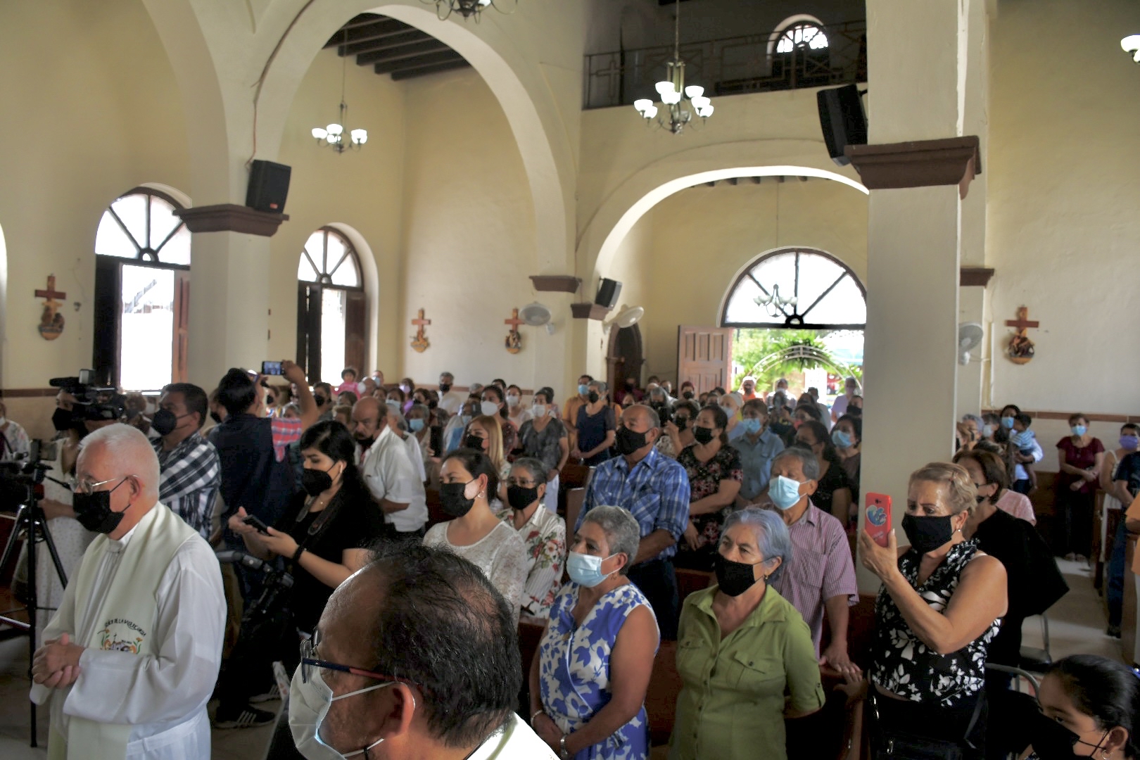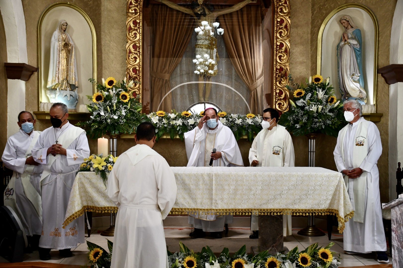 Durante la celebración de la eucaristía en la tradicionalmente conocida “Capillita”, González García fue acompañado por el párroco en Ramos Arizpe, Roberto Velázquez Tetazin así como de los frailes agustinos, encargados del templo, sacerdotes de la vicaria de San Juan Larios y decenas de fieles que se congregaron en el templo.