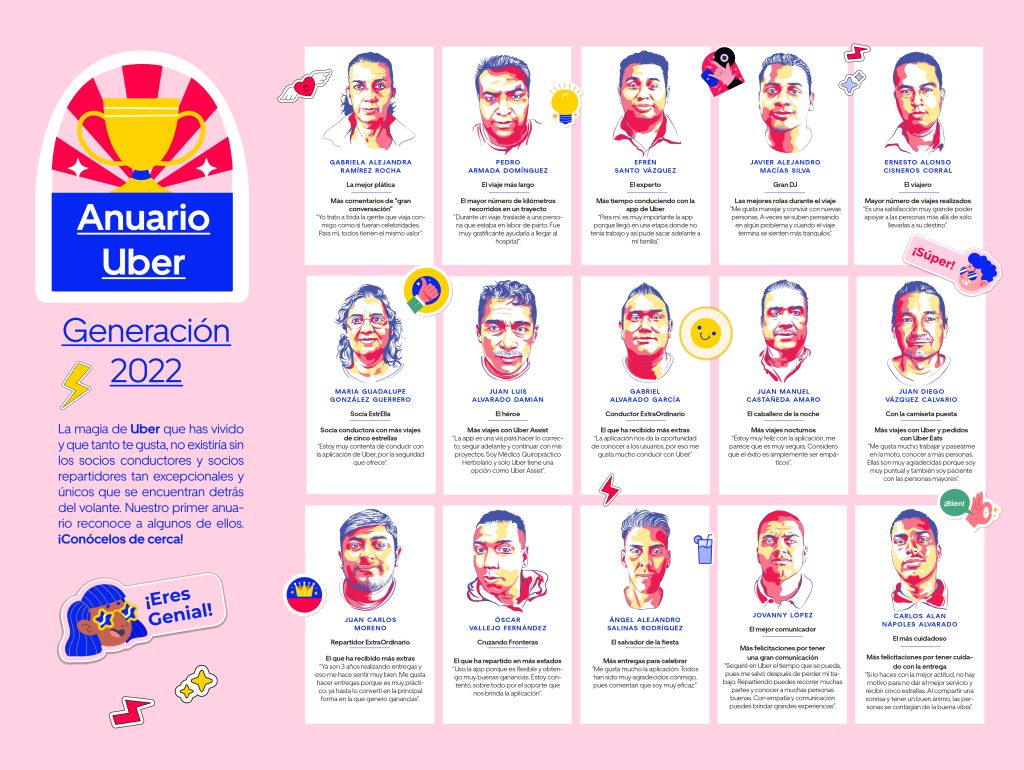 Ciudad de México.- Uber anunció el lanzamiento de su anuario 2022, proyecto que celebra a algunos de los socios conductores y socios repartidores registrados en la plataforma más destacados en México, gracias a su esfuerzo y dedicación por brindar un gran servicio a los usuarios que usan la app de Uber y Uber Eats.