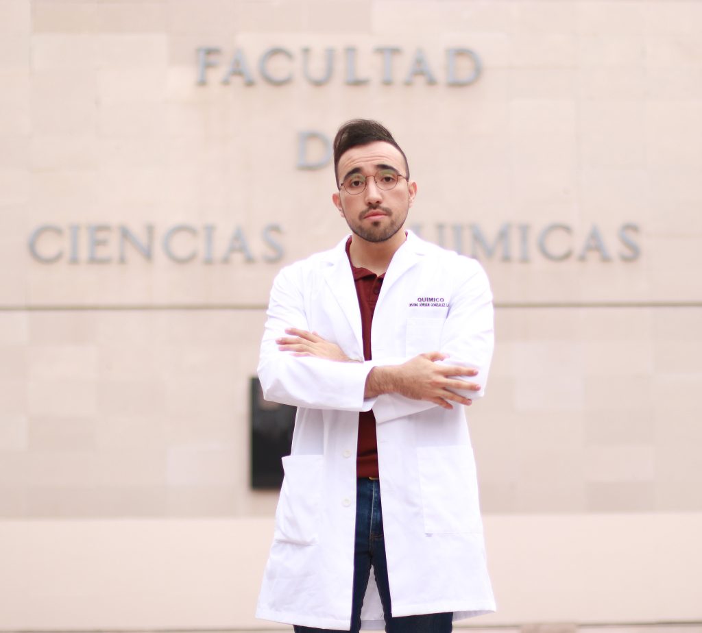 Irving Adrián González Lara es egresado de la Licenciatura en Química de la Facultad de Ciencias Químicas, cuenta con 27 años de edad y obtuvo el Premio por sus logros en proyectos de investigación, entre ellos, su tesis “Diseño de hidrogeles basados en colágeno-poliuretano-poliacrilato para aplicaciones biomédicas”, trabajo que realizó bajo la supervisión del profesor e investigador de la Facultad, Dr. Jesús Alejandro Claudio Rizo en el Departamento de Materiales Avanzados.