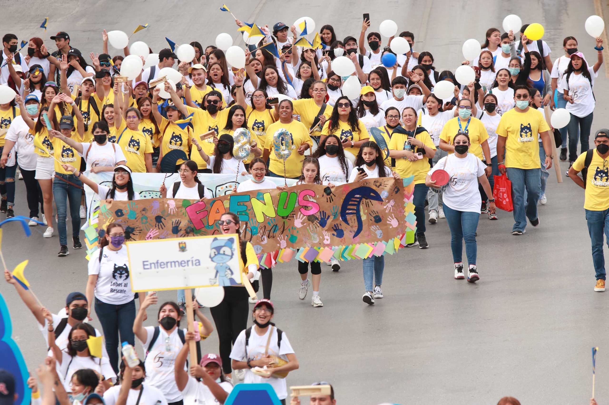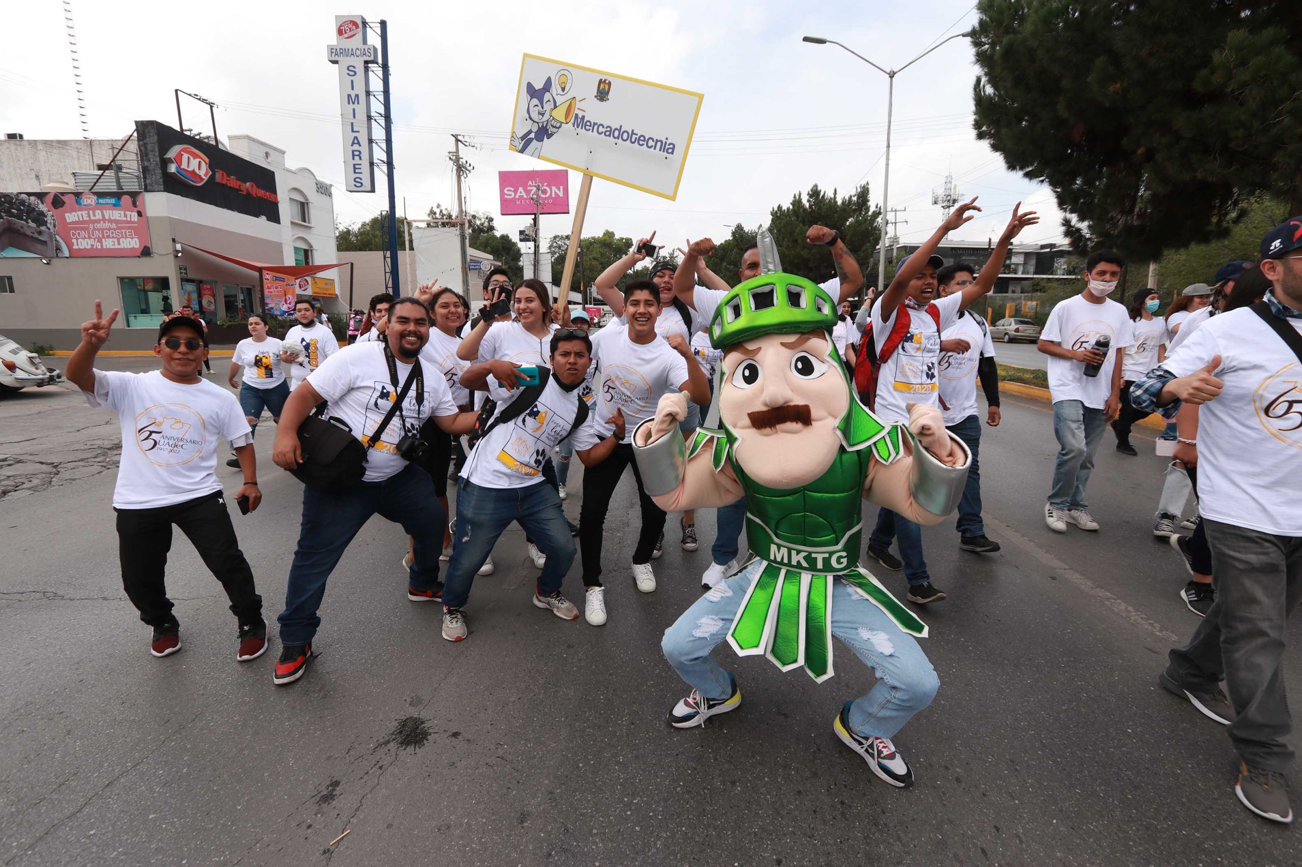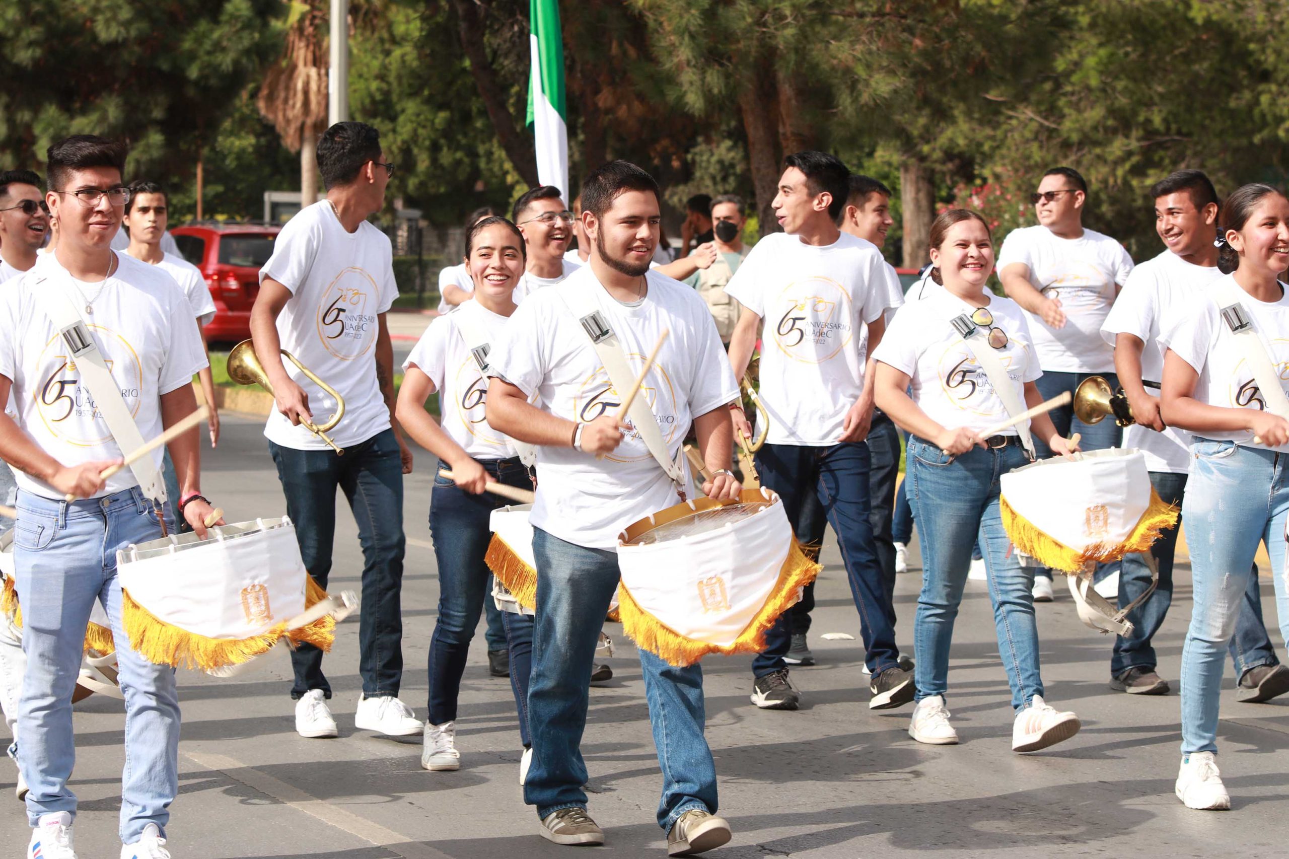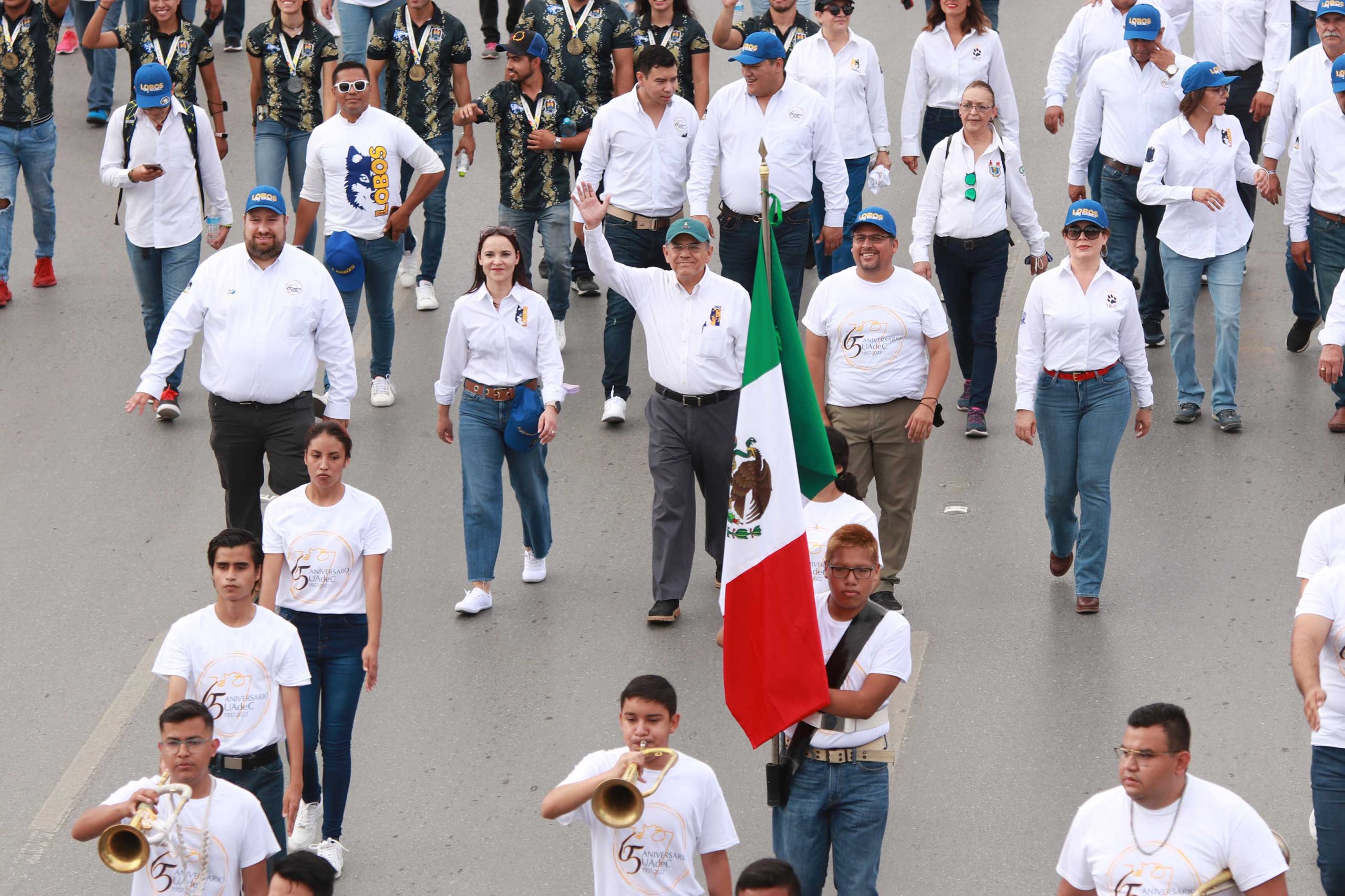 “Hoy de nueva cuenta estamos muy orgullosos y contentos, porque después de dos años que no podíamos salir a desfilar, hoy estamos aquí; nos da mucho gusto porque estos espacios construyen nuestra parte emocional y social que como seres humanos necesitamos, por ello es muy importante relacionarnos y convivir”, afirmó el Rector.