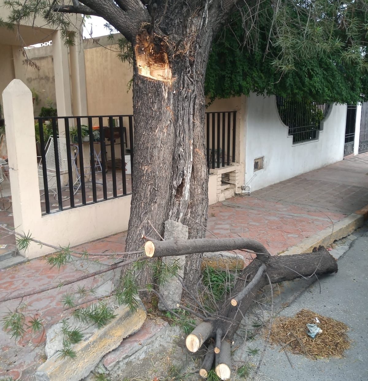 Diversas ramas de un árbol se colapsaron debido a la humedad y antigüedad del mismo que sumados al debilitamiento de la madera cayó y obstruyó la vía pública afectando el paso de vehículos, así como dejar colgados diversos cables de las compañías de cable y televisión.