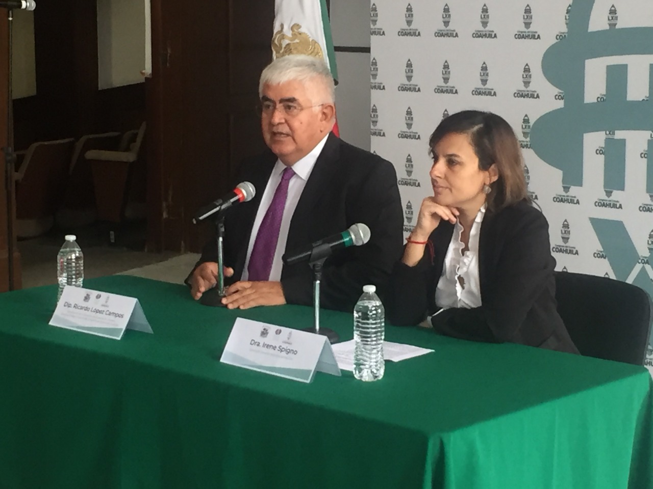 El diputado Ricardo López Campos, coordinador de la Comisión de Gobernación, Puntos Constitucionales y Justicia, conjuntamente con la doctora Irene Spigno, directora general de la Academia IDH, dieron un mensaje inaugural de este foro, el cual nace a partir de la iniciativa presentada por el gobernador Miguel Ángel Riquelme Solís, con el objetivo de reformar diversas disposiciones de la Constitución Política, del Código Electoral, y la Ley de Medios de Impugnación en Materia Político Electoral y de Participación Ciudadana, todas del Estado de Coahuila.