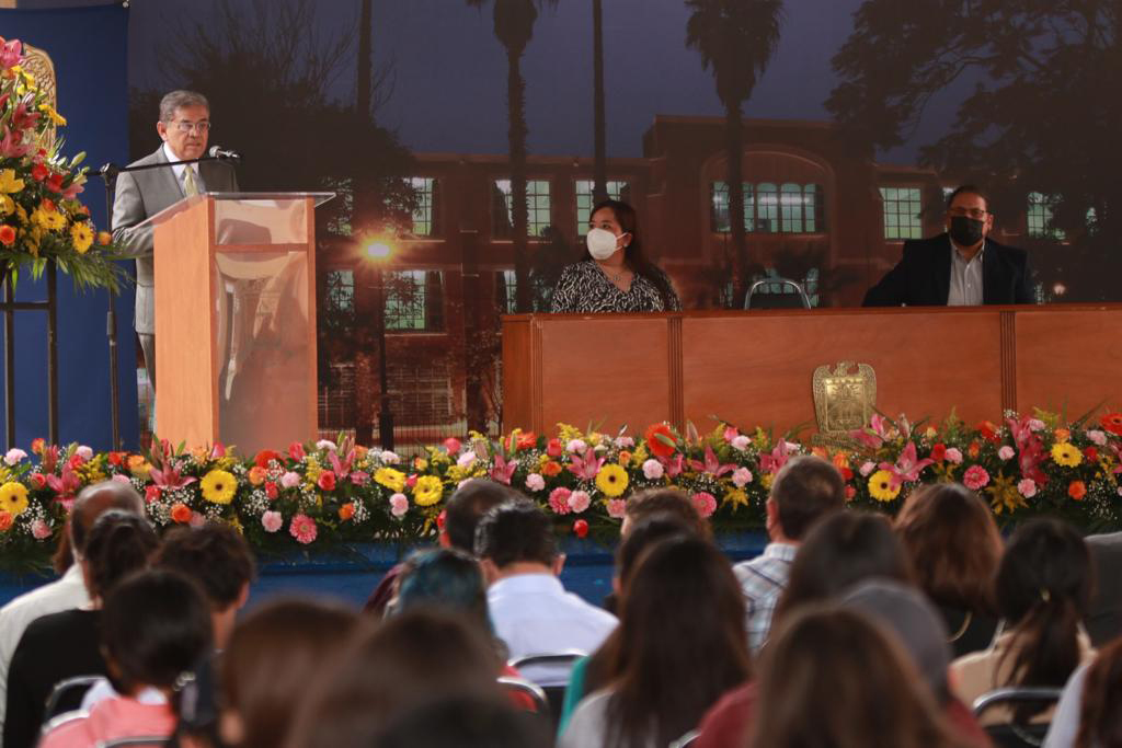 En su mensaje el Rector expresó que la Escuela de Bachilleres “Dr. Mariano Narváez González” es uno de los planteles que dio origen a la Universidad, por lo que es una escuela de tradición, fortalecida en su actividad académica y desarrollo humano e integral de los jóvenes, por ello es algo histórico y digno de reconocimiento que llegue a su 70 aniversario.