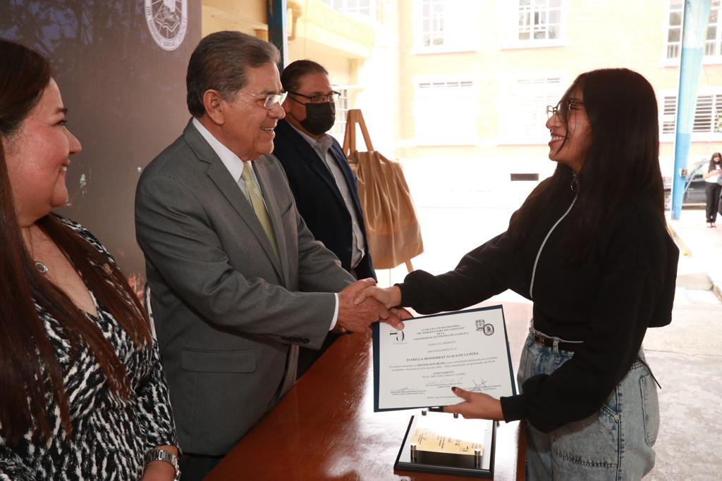 En la ceremonia se reconoció con la Distinción Búho a alumnos destacados en el ámbito académico: Estrella Monserrat Ayala de la Peña, Ana Sofía Salazar Coronado, Saira Guadalupe Esquivel Rocha, Daniel Antonio Valdez Flores y Camila Yadira Espinoza Torres; también para los docentes Sofía Isabel Villanueva Castellanos, Rafael Sánchez Ramírez, Leticia Faz Contreras y Jorge Dávila de la Garza, recibieron el reconocimiento por años de servicio 15, 20 y 35 respectivamente.