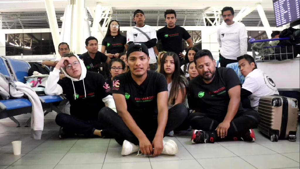 A través de un video difundido en sus redes sociales la compañía de danza folclórica San Marcos pidió ayuda a la autoridades mexicanas para poder salir de Europa, donde además afirmaron no tener dinero para costear su estancia en el aeropuerto de Sofía y mucho menos para regresar a México y condenaron que Adrián Mora ya no les contesta los mensajes ni han recibido respuesta de la Embajada de México. (EL HERALDO)