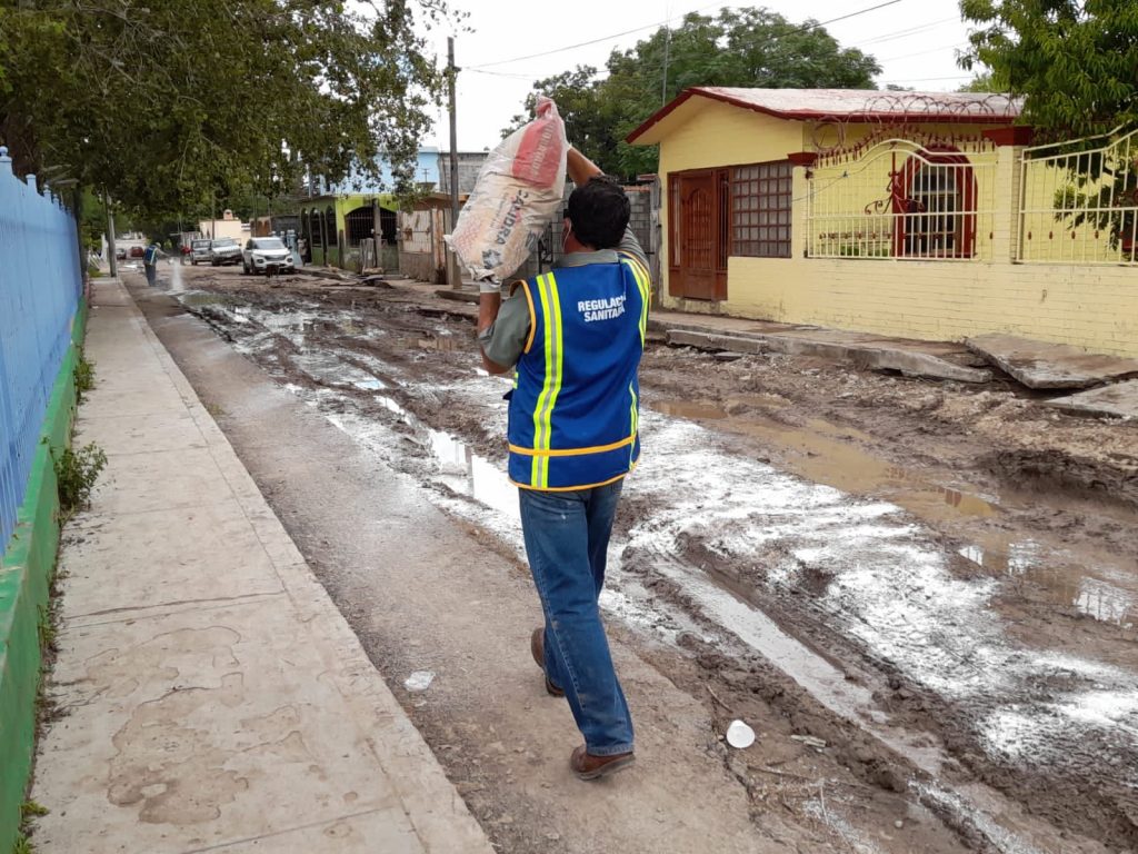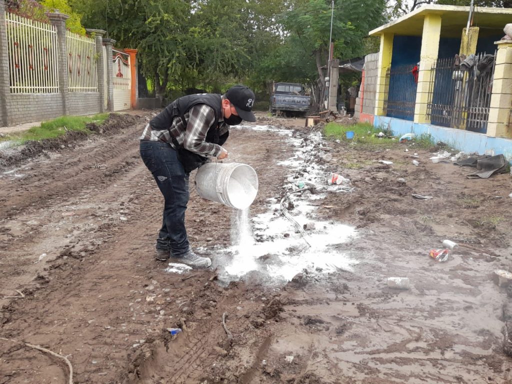 Explicó que en zonas donde existen encharcamientos se colocaron mil 200 kilos de cal para combatir posibles focos de infección.