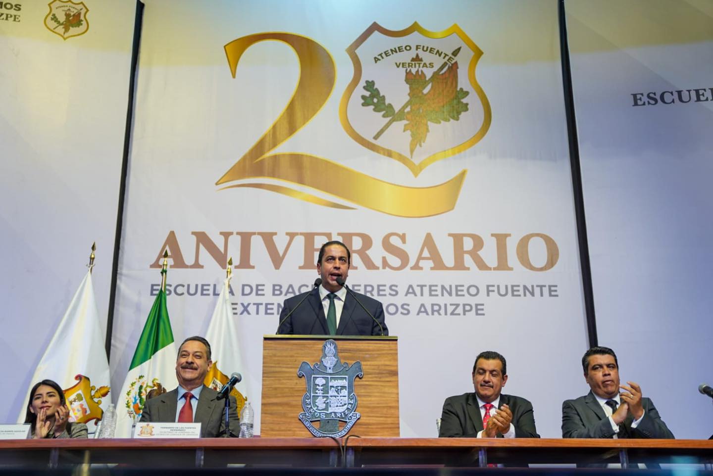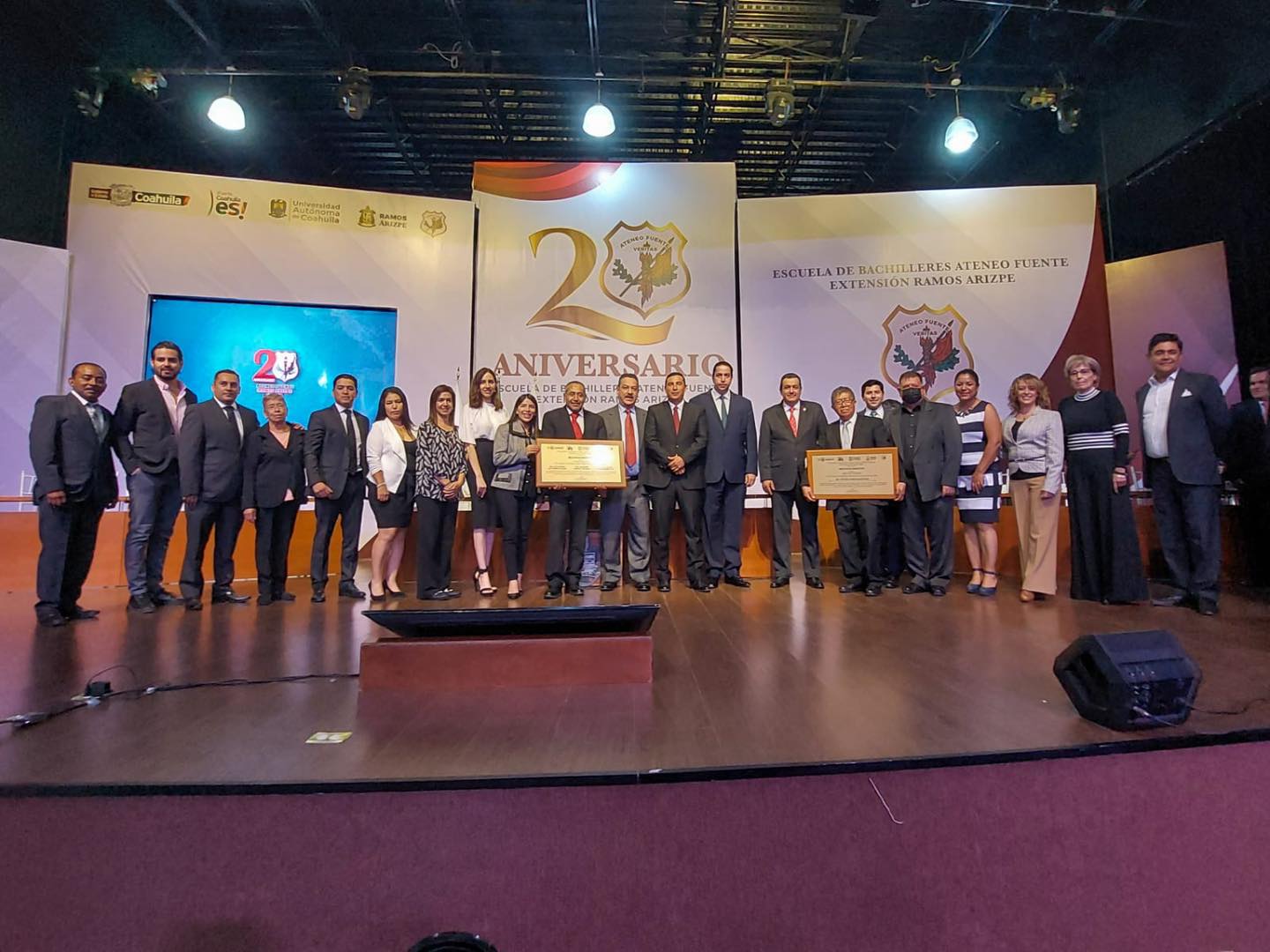 Este jueves, con una Sesión Solemne, el Cabildo del Ayuntamiento de Ramos Arizpe rindió un homenaje a la Escuela de Bachilleres Ateneo Fuente de este municipio por el vigésimo aniversario de su fundación, evento celebrado en el teatro de la ciudad “Eulalio Gutiérrez Ortiz”.