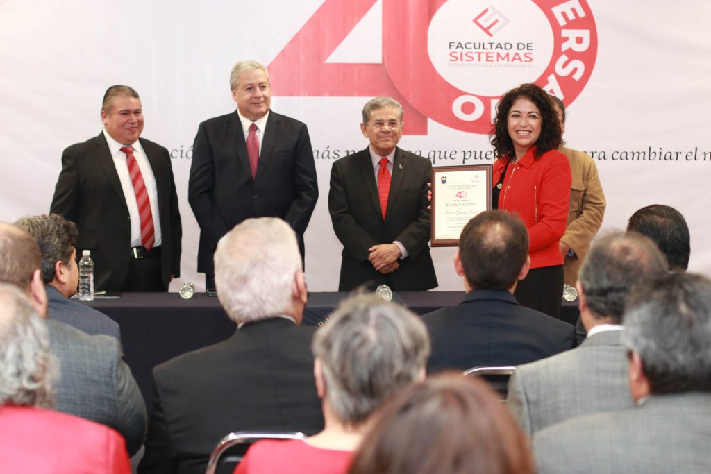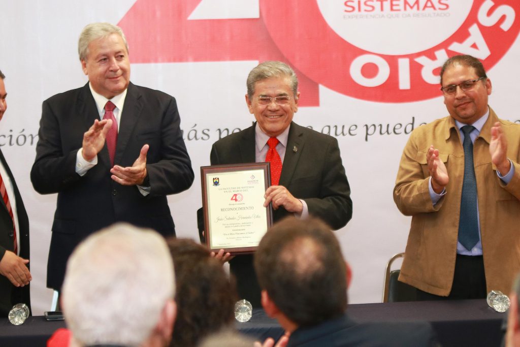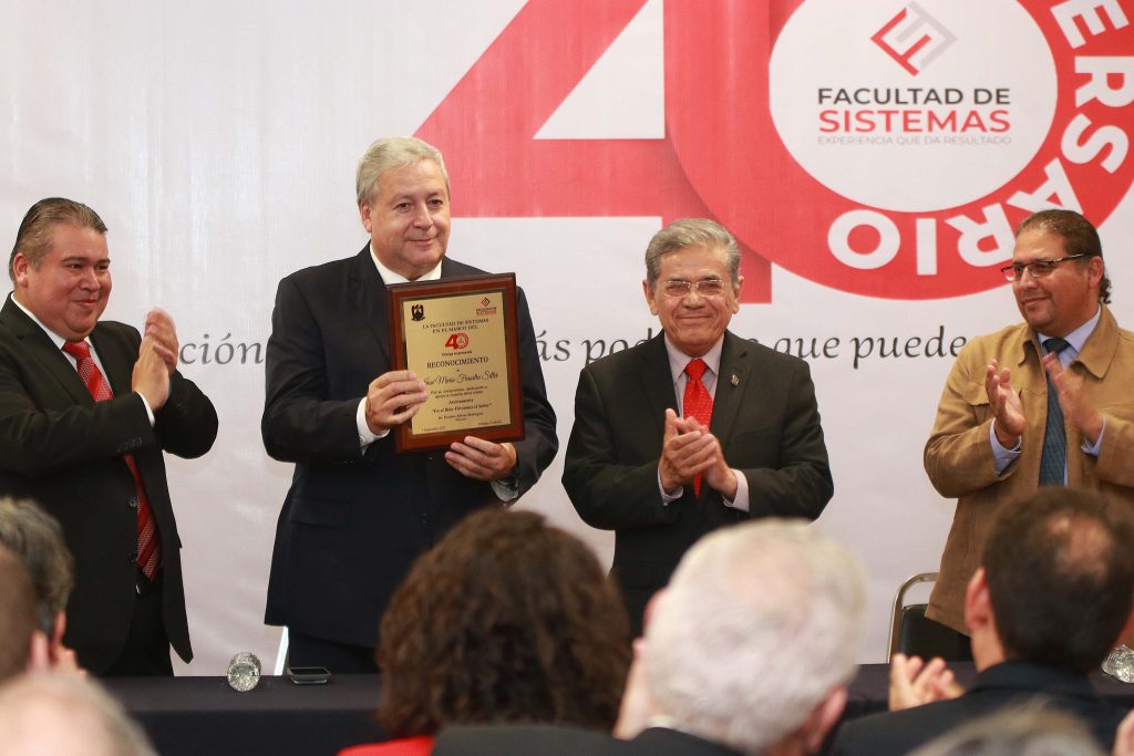 Durante el evento se entregaron reconocimientos a personalidades que han sido claves en el crecimiento de la Facultad, por su compromiso, dedicación y apoyo: al Lic. Álvaro Moreira Valdés, egresado del plantel en la carrera de Ingeniero Industrial y de Sistemas y que ha destacado por su trabajo dentro de la comunidad y desde el ámbito privado al Ing. Miguel Herrera Guzmán de la empresa Hexaware, egresado de la Facultad en la carrera de Ingeniero en Sistemas Computacionales.