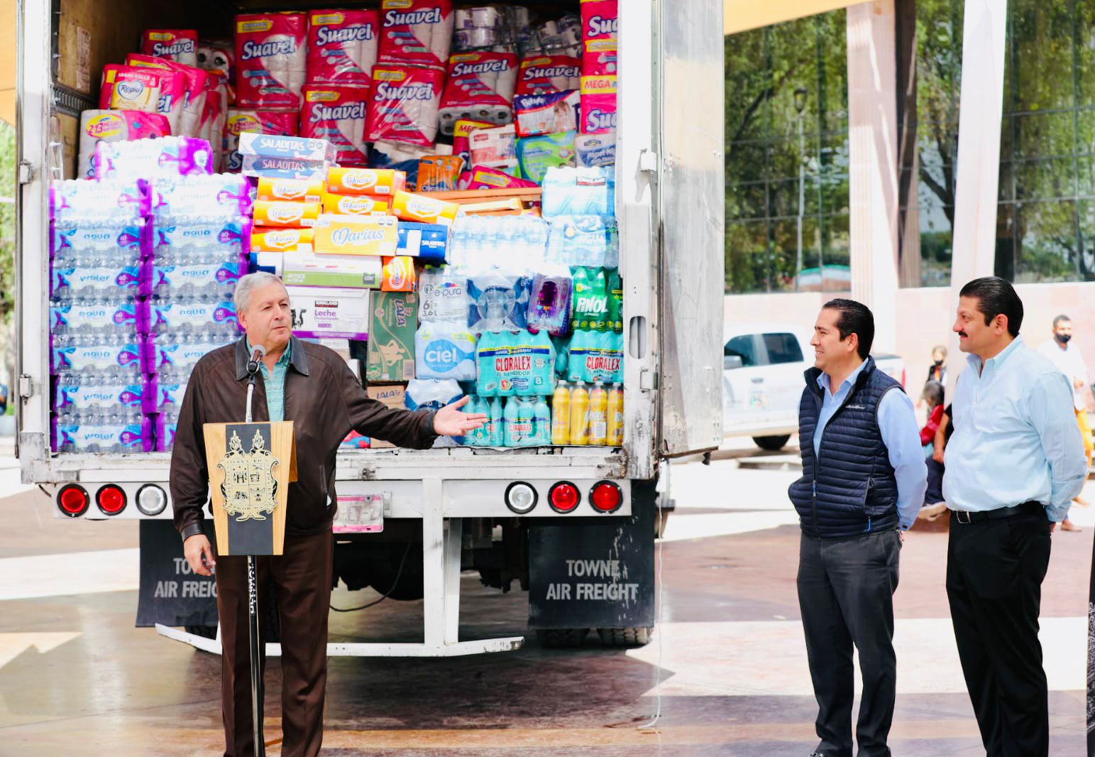 Los saltillenses somos unidos, dijo el alcalde José María Fraustro Siller al dar el banderazo de salida al camión que transporta 5.5 toneladas de ayuda para Múzquiz.