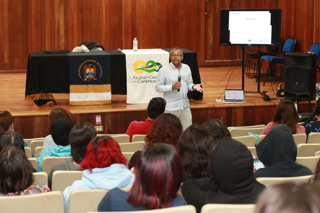 Este lunes en la Facultad de Ciencias de la Comunicación de la Universidad Autónoma de Coahuila, se impartió el Taller de Formación de Audiencias Criticas, a cargo del Dr. Lenin Martell Gámez, quien es académico y coordinador del “Centro de escritura y cultura digital” de la Facultad de Ciencias Políticas y Sociales de la Universidad Autónoma del Estado de México.