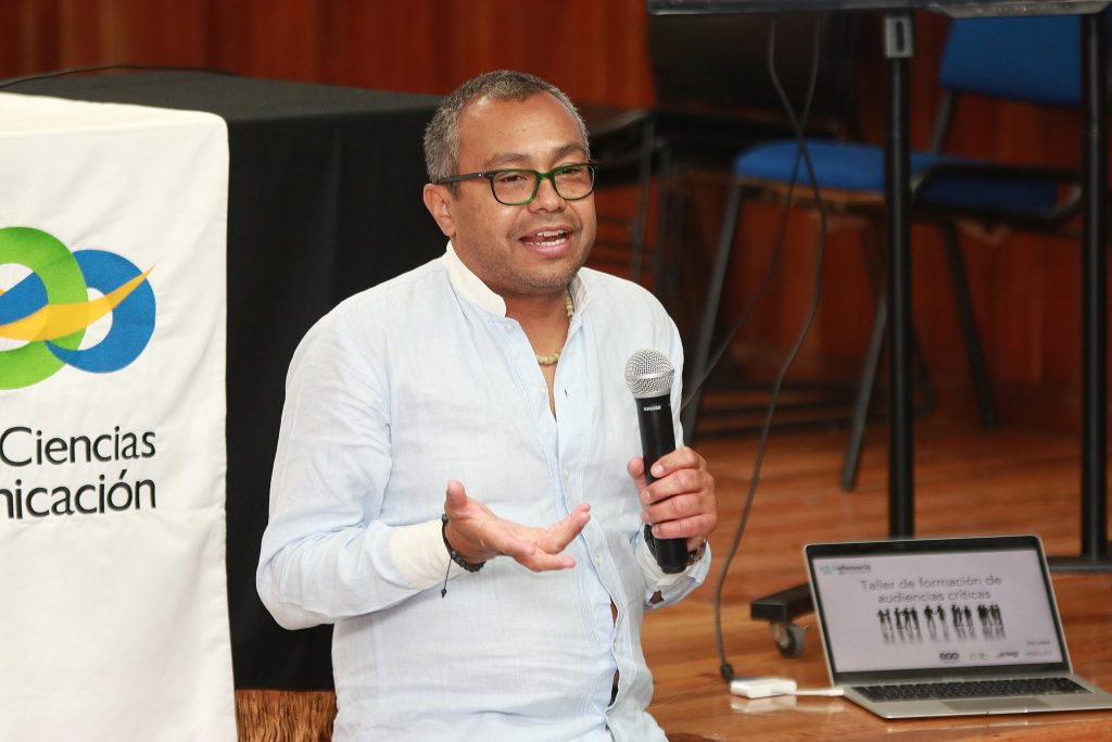 Durante el taller, Lenin Martell Gámez reflexionó con los estudiantes de la Facultad de Ciencias de la Comunicación sobre la manera en la que se atienden los contenidos mediáticos y que una audiencia crítica tiene que ver con la crítica al capitalismo, por lo que es importante que los espectadores fijen una postura y estén alertas a los distintos medios.
