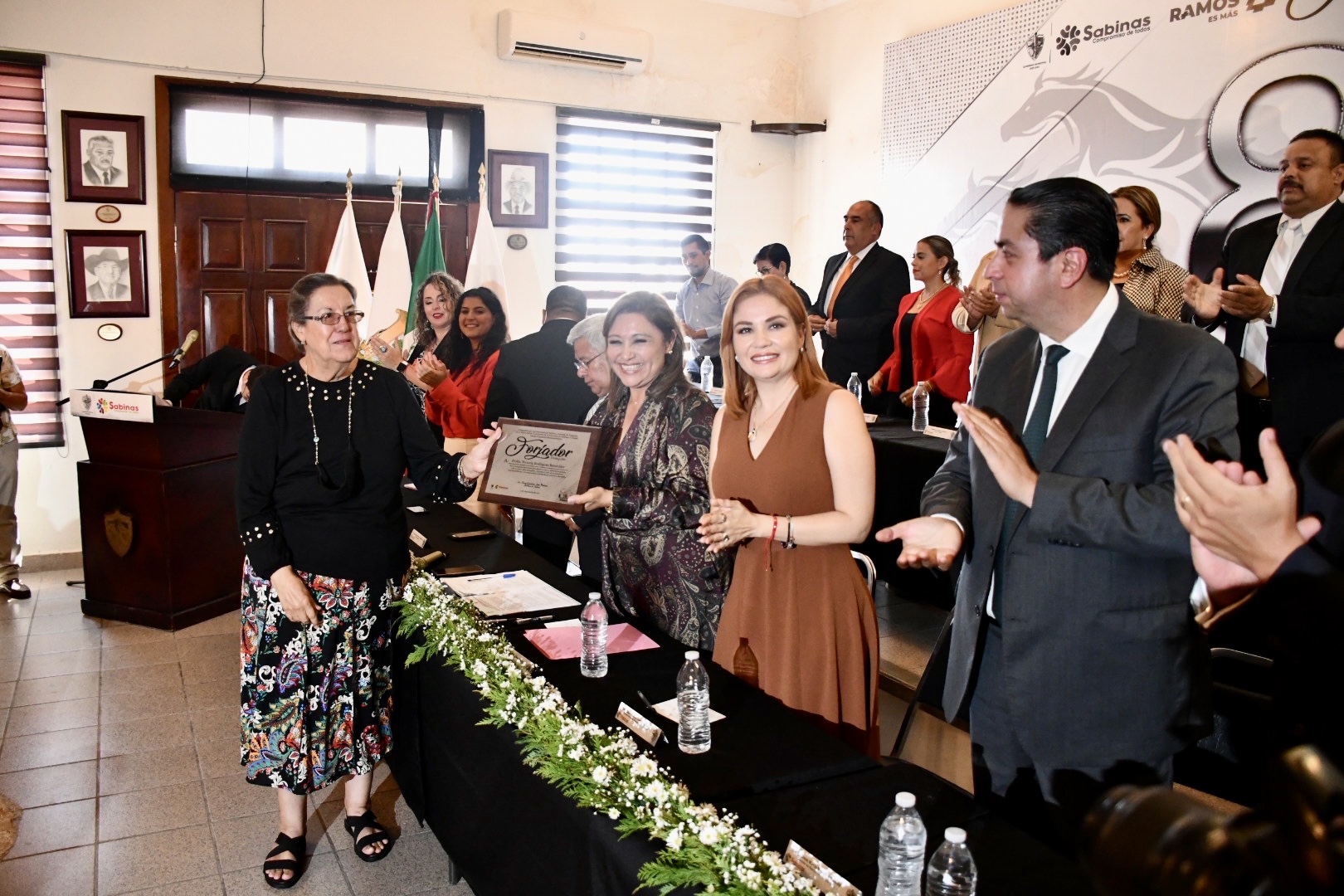 Como parte de la sesión solemne se reconoció la trayectoria de tres sabinenses distinguidos por haber aportado sus conocimientos y sus virtudes en pro de la ciudad, entregando por manos de los ediles una placa conmemorativa en el marco del 80 aniversario de la ciudad, a Victoria Rodríguez Benavides, Luis Barrera Morales y Jesús de Hoyos Rodríguez.