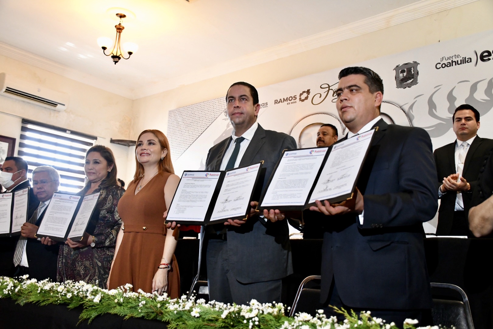 Durante la ceremonia, llevada a cabo en el auditorio principal de la Presidencia Municipal de Sabinas, se destacaron las bondades de ambos municipios, así como la cercanía que permitirá impulsar acciones en beneficio de sus ciudadanos.
