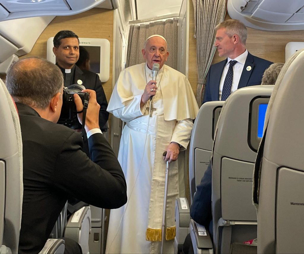 El Papa Francisco subió al avión papal con unos 70 periodistas para iniciar el 38º viaje internacional de su pontificado.