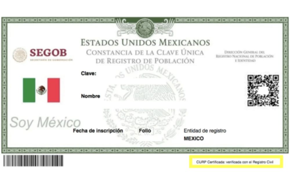 La Clave Única de Registro Poblacional (CURP) es una serie de letras y números que identifican a un habitante de la República Mexicana, esta clave es oficial y personalizada y se emite en un documento en línea que puede ser impreso o presentado en algún dispositivo.