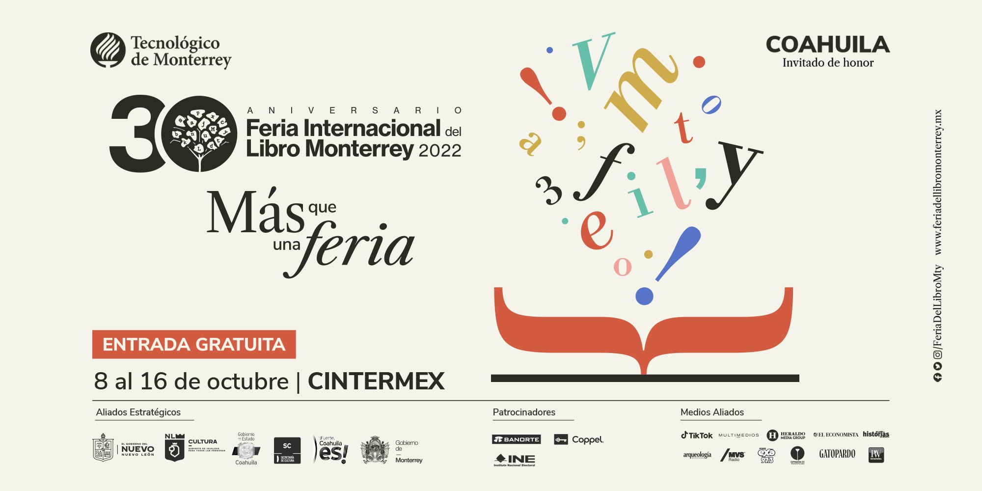 Este miércoles en conferencia de prensa, se anunció el programa completo de esta edición que será híbrido, que tiene a Coahuila como invitado de honor, que vuelve a ser gratuita en su totalidad y que se realizará en el recinto ferial de Cintermex, del 8 al 16 de octubre dónde se ofrecerán cerca de 900 actividades en la que participan más de 550 autores y casi 600 sellos editoriales.