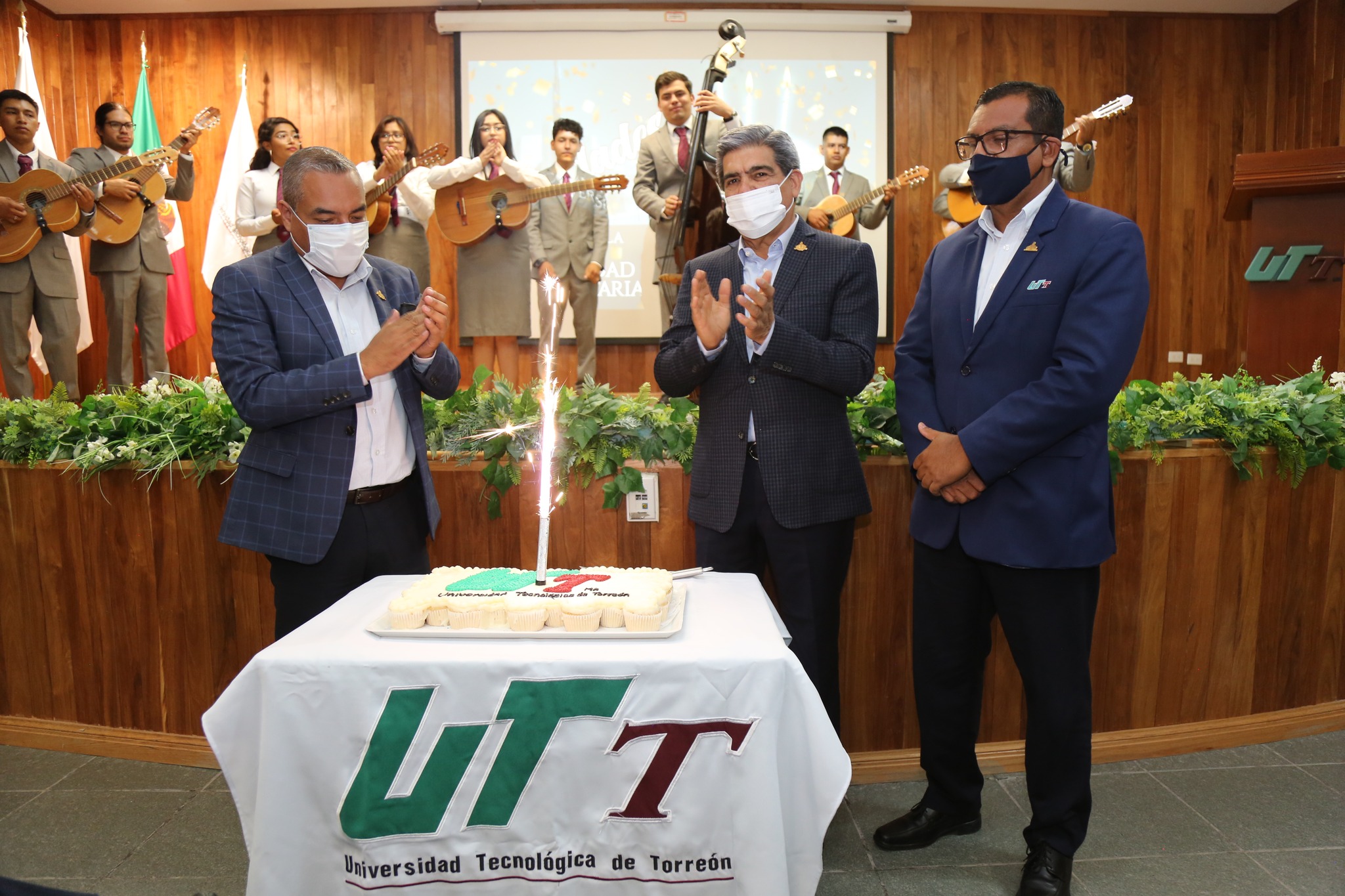 Se cantaron las tradicionales Mañanitas, interpretadas por la Rondalla de la UTT y no podía faltar el pastel del cumpleaños número 24 de la Universidad Tecnológica de Torreón.