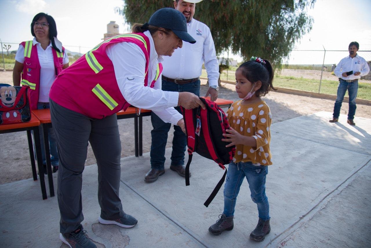 La primera entrega se llevó a cabo en los ejidos Santa Victoria, Palmas Altas, Astillero y San Felipe donde niñas y niños de diferentes niveles educativos recibieron los artículos.