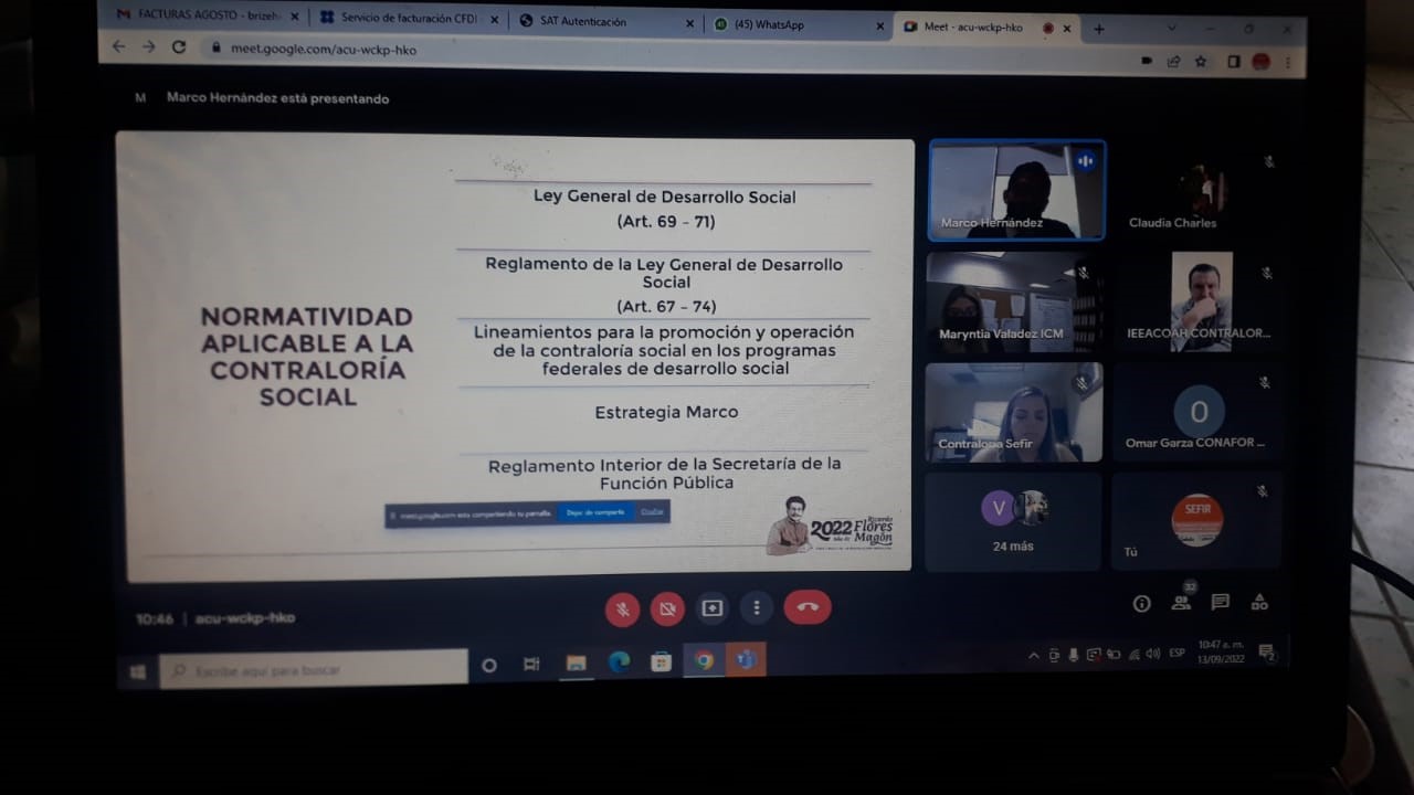 La SEFIRC Coahuila y la Secretaría de la Función Pública federal llevaron a cabo la capacitación virtual para los enlaces de Contraloría Social estatales y federales de los 20 programas federalizados convenidos en el Programa Anual de Trabajo 2022.