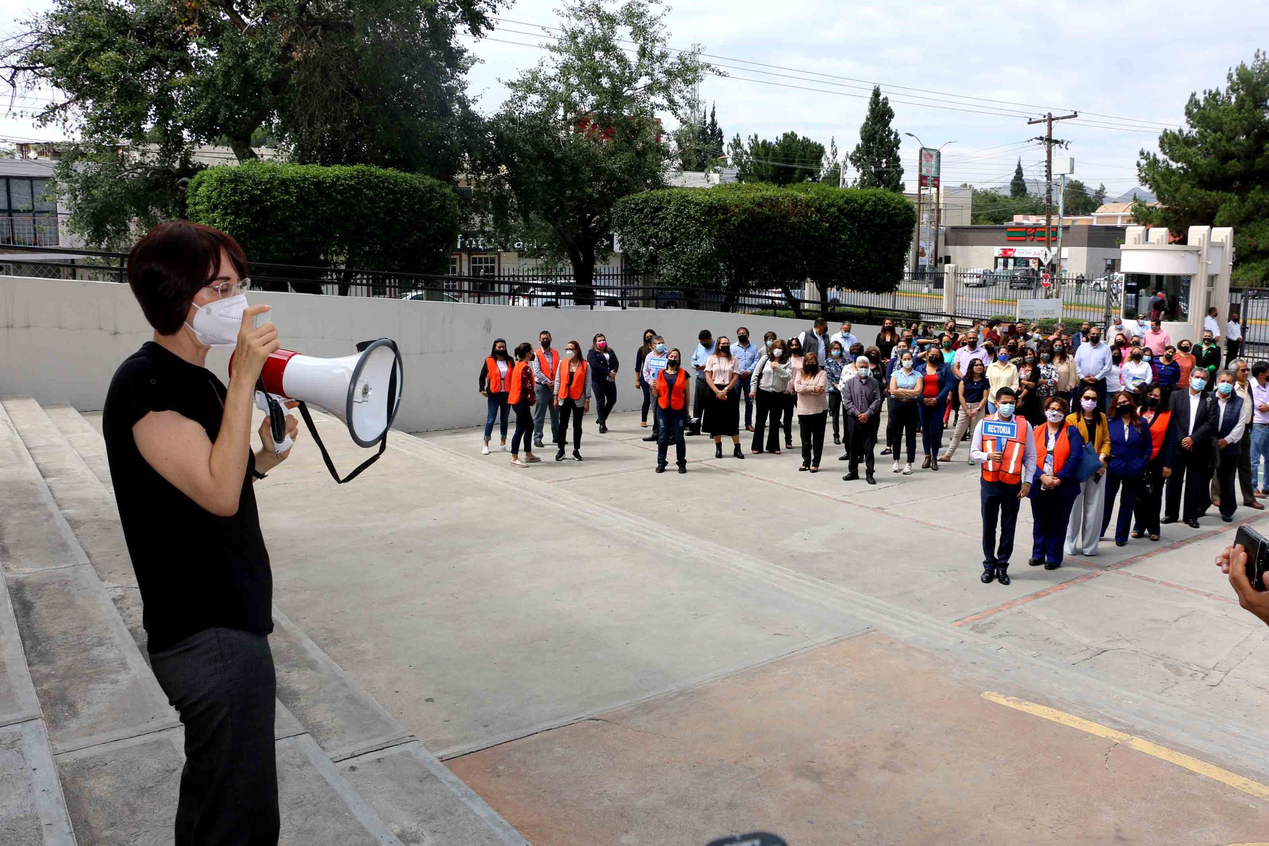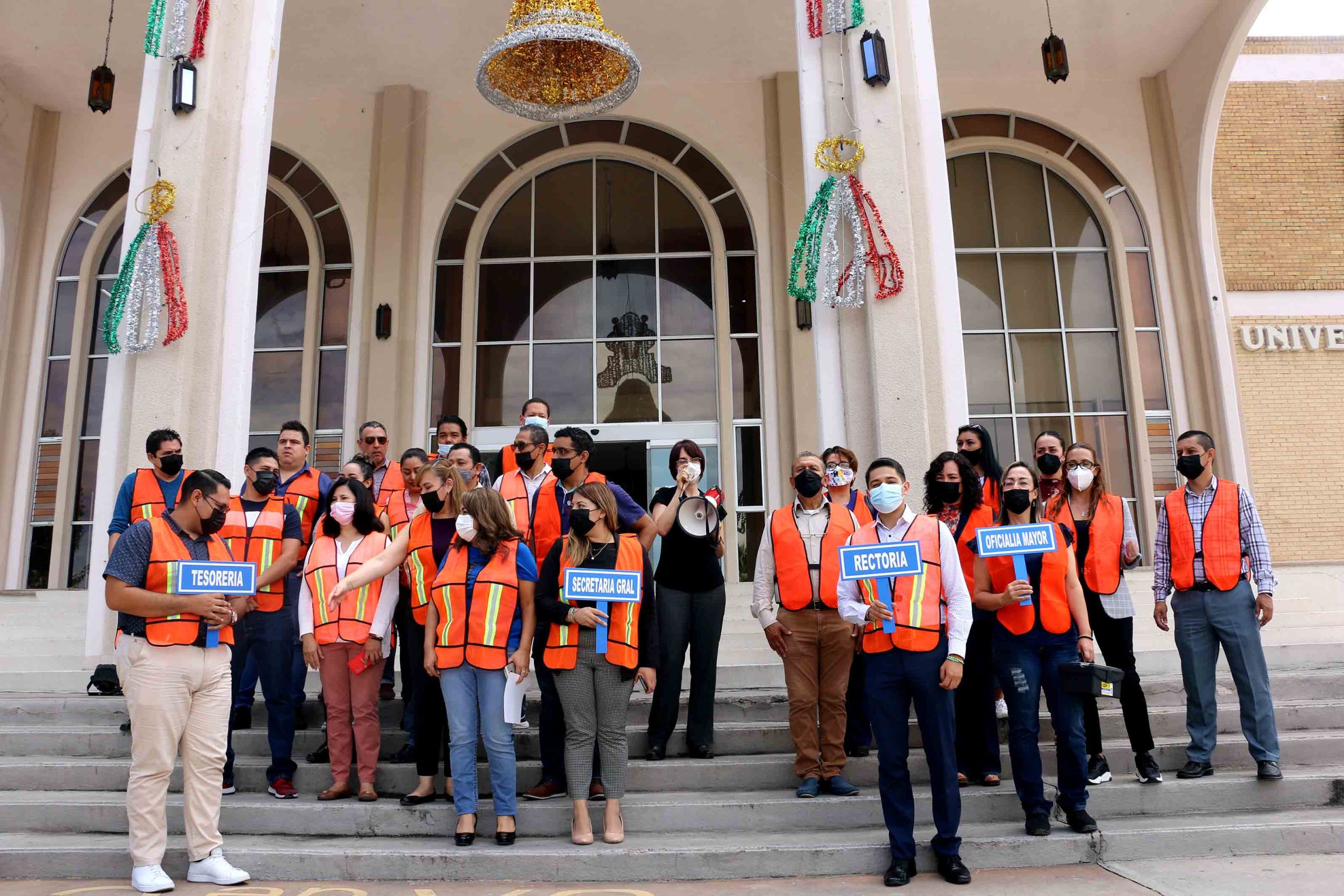 Para conmemorar el Día Nacional de Protección Civil, la Universidad Autónoma de Coahuila realizó un simulacro de evacuación en el edificio de la Rectoría, con el objetivo de que el personal conociera y realizara lo protocolos de desalojo del edificio.