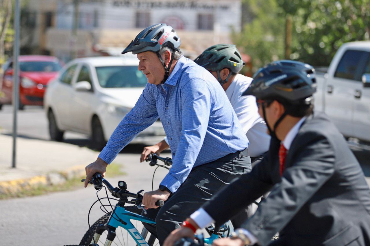 Acompañado por Carlos Estrada Flores, Secretario del Ayuntamiento, así como Héctor M. Reyes Soto, director de Comunicación Social de Saltillo, Hugo Carreón, director Jurídico y distintos funcionarios municipales, el edil saltillense realizó una rodada para llegar a la Presidencia Municipal ubicada sobre el bulevar Francisco Coss.