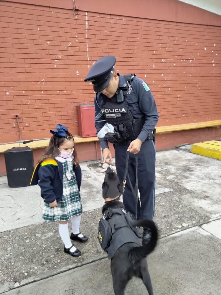“Shelby tiene talento, se ha ido adaptando muy bien con sus otros compañeros del K9 y en las escuelas saluda a las niñas y los niños y ha sido aceptada muy bien”, mencionó.