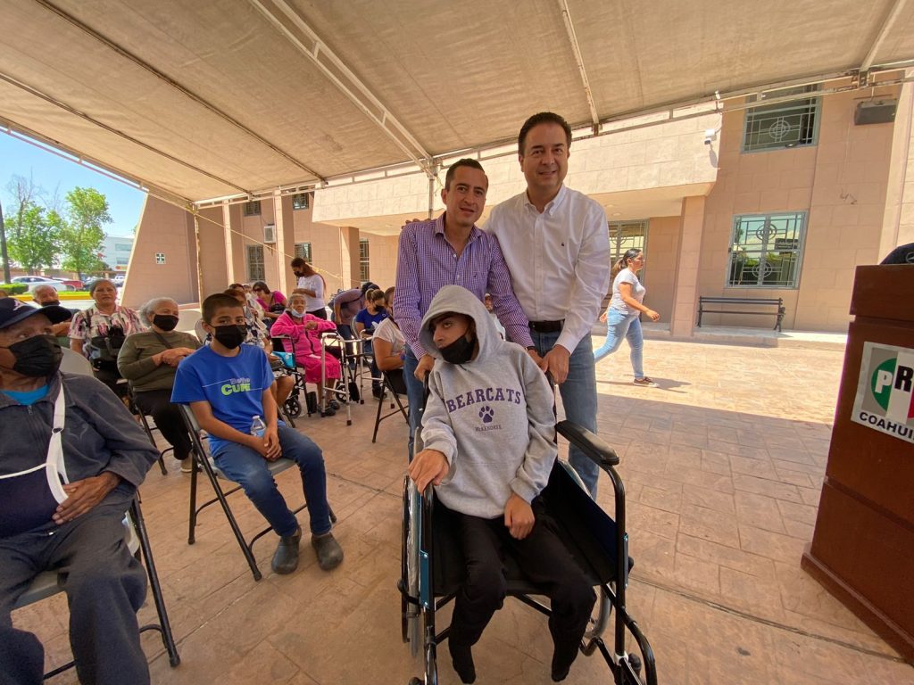 El diputado federal del PRI, Jaime Bueno Zertuche, entregó este viernes 20 sillas de ruedas a igual número de saltillenses beneficiarios.