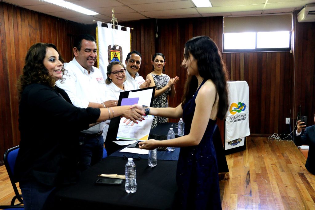 La ceremonia de premiación se llevó a cabo en la Facultad de Ciencias de la Comunicación (FCC), con la presencia de la directora del plantel, Gabriela de la Peña Astorga, la directora de la Facultad de Psicología, Ana Berenice de la Peña, el director de la Facultad de Ciencias Sociales, José Gustavo González, el director de la Facultad de Jurisprudencia, Alfonso Yáñez Arreola y la subcoordinadora de la Coordinación General de Difusión y Patrimonio Cultural, Maribel Lugo.
