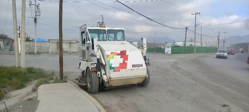 El departamento de Servicios Municipales en Ramos Arizpe utiliza una barredora para limpiar distintos puntos de la zona urbana.