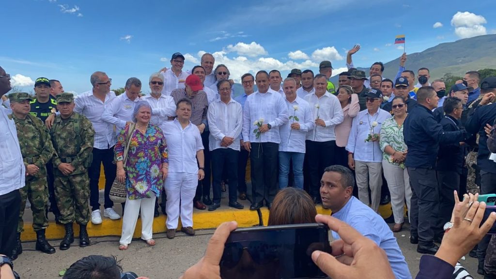 San Antonio del Táchira, Venezuela.- La frontera entre Colombia y Venezuela se reabrió este lunes 26 de septiembre de manera formal, tras permanecer siete años cerrada al transporte vehicular y comercial, en un acto simbólico realizado en el Puente Internacional Simón Bolívar que comunica el municipio colombiano de Cúcuta con la ciudad venezolana de San Antonio del Táchira.