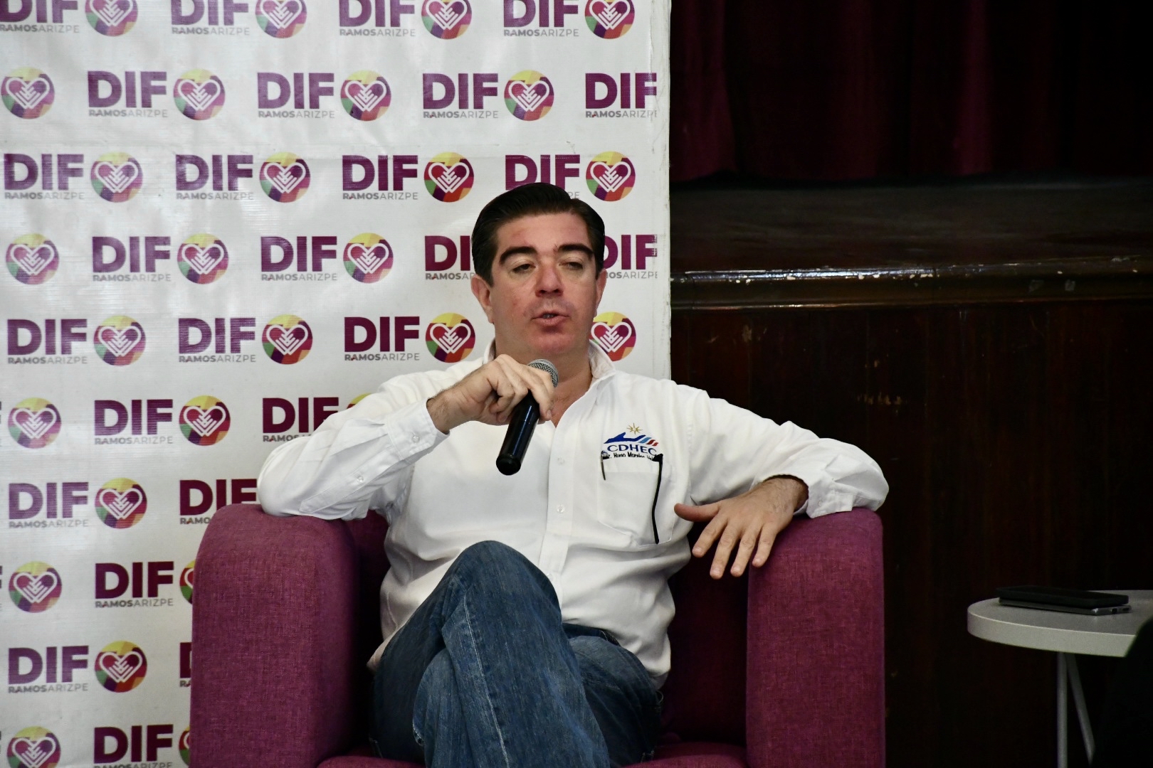 La charla tuvo lugar en el auditorio de la Casa del Adulto Mayor, donde la presidenta del sistema DIF Municipal, Ana Lucía Cavazos Cuéllar recibió al presidente de la CDHC y a los funcionarios municipales.