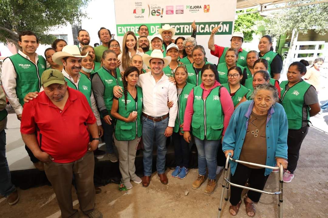 General Cepeda, Coah.- Con el objetivo de continuar mejorando la calidad de vida de la población coahuilense, el Secretario de Inclusión y Desarrollo Social, Manolo Jiménez Salinas, a través del programa Mejorando Ando entregó una importante obra de electrificación en General Cepeda, en donde ratificó el compromiso del gobernador Miguel Riquelme de continuar trabajando para que todas las familias del estado cuenten con una mejor infraestructura social.
