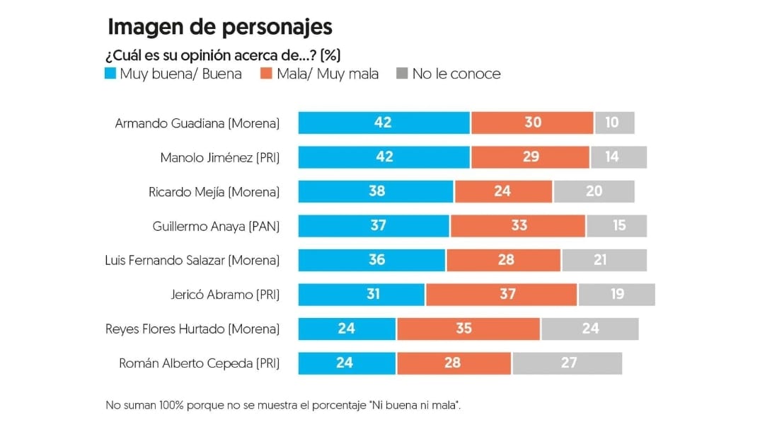 Dicho análisis da a conocer que el senador Guadiana Tijerina cuenta con una aprobación ciudadana del 42 por ciento y se encuentra como favorito de Morena entre la población general con un 29 por ciento de preferencia, mientras que, por parte de los simpatizantes morenistas, también se encuentra a la cabeza con un 45 por ciento, encima de Luis Fernando Salazar que tiene un 26 por ciento de preferencia, Ricardo Medía Berdeja que tiene un 20 por ciento y Reyes Flores un 4 por ciento.