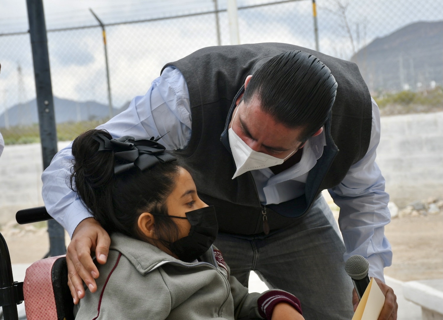 Chema Morales Padilla, alcalde de Ramos Arizpe, atendió la solicitud de entregar una silla de ruedas especial para la niña Estefany Guadalupe Rosas Cruz, quien estudia en la primaria “Lorenzo Martínez Medina” de la colonia Parajes Del Valle.