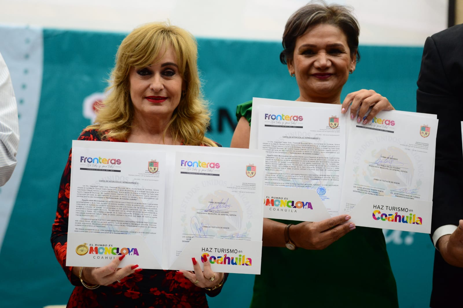 En las instalaciones de la Unidad de Seminarios de la Universidad Autónoma de Coahuila, la Secretaria de Turismo y Pueblos Mágicos del Estado, Azucena Ramos Ramos, realizó la firma de dos convenios de hermanamiento, como son: General Cepeda (a cargo del alcalde Pablo Salas Aguirre) con Frontera, Sonora (representada por la alcaldesa Guadalupe Valdez).
