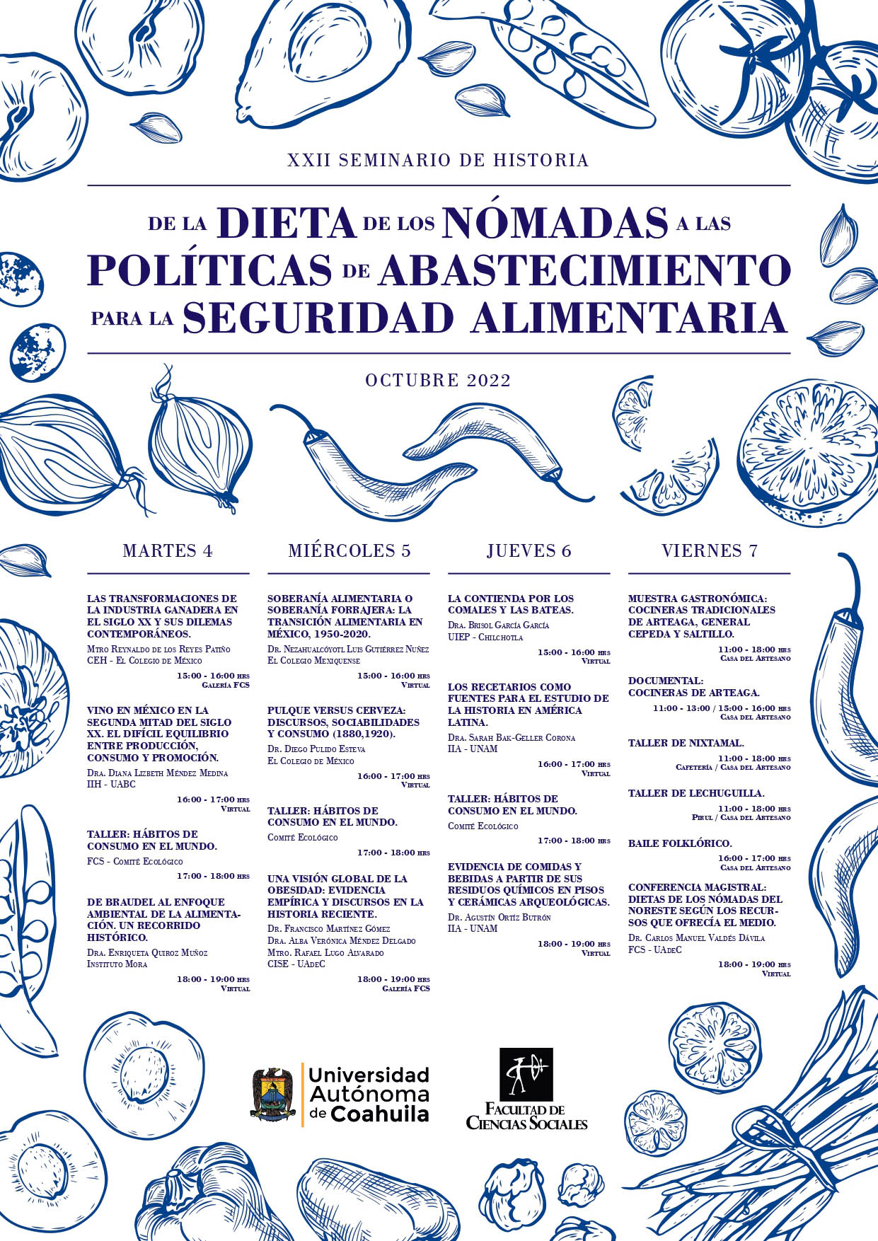 Con el tema de “Dieta de los Nómadas a las Políticas de Abastecimiento para la Seguridad Alimentaria” se desarrollará el XXII Seminario de Historia que la Facultad de Ciencias Sociales de la Universidad Autónoma de Coahuila del martes 4 al viernes 7 de octubre.