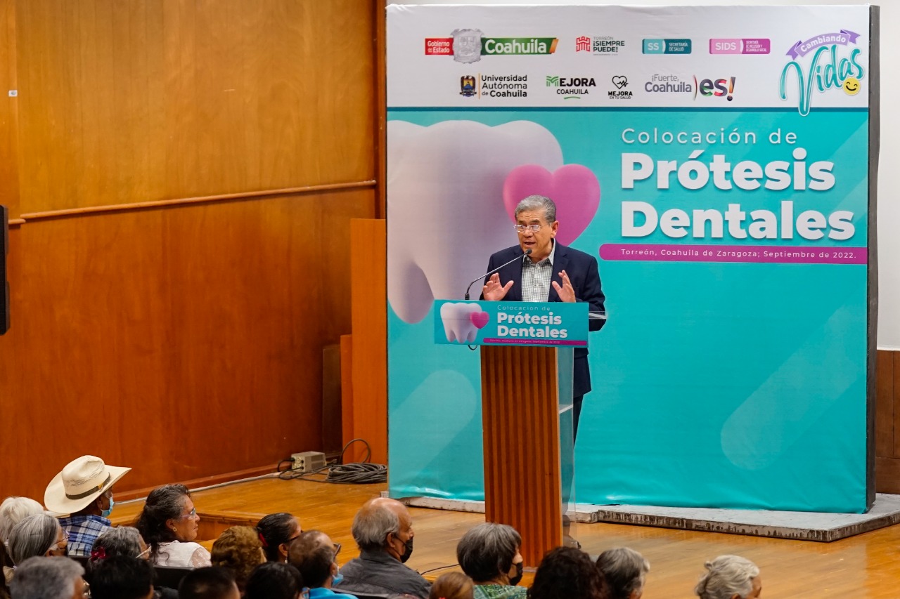 El marco general lo brindó el Coordinador Estatal de Salud Bucal de Coahuila, Omar Morales Dávila, quien precisó que las prótesis son más necesarias en adultos y adultos mayores, y al contar con ésta, el paciente puede comer y disfrutar de alimentos, hablar y pronunciar correctamente, mejorar su higiene bucal, dormir y relajarse, sonreír y mostrar los dientes sin pena, tener la posibilidad de disfrutar de un trabajo y de convivir con la gente, por eso es trascendental este programa.