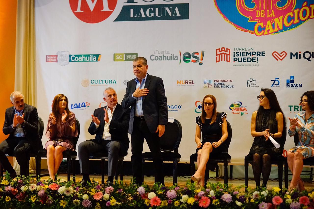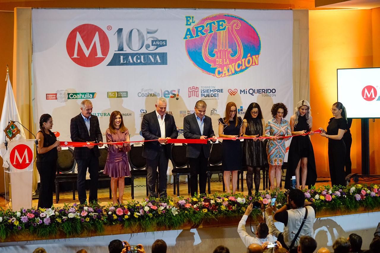 Torreón.- El gobernador Miguel Ángel Riquelme Solís inauguró la Exposición “El Arte de la Canción” en esta ciudad, que se realiza a través de la Secretaría de Cultura del Estado y el Museo Regional de La Laguna-INAH y Grupo Milenio, con el propósito de celebrar los 105 años de Milenio Diario Laguna.