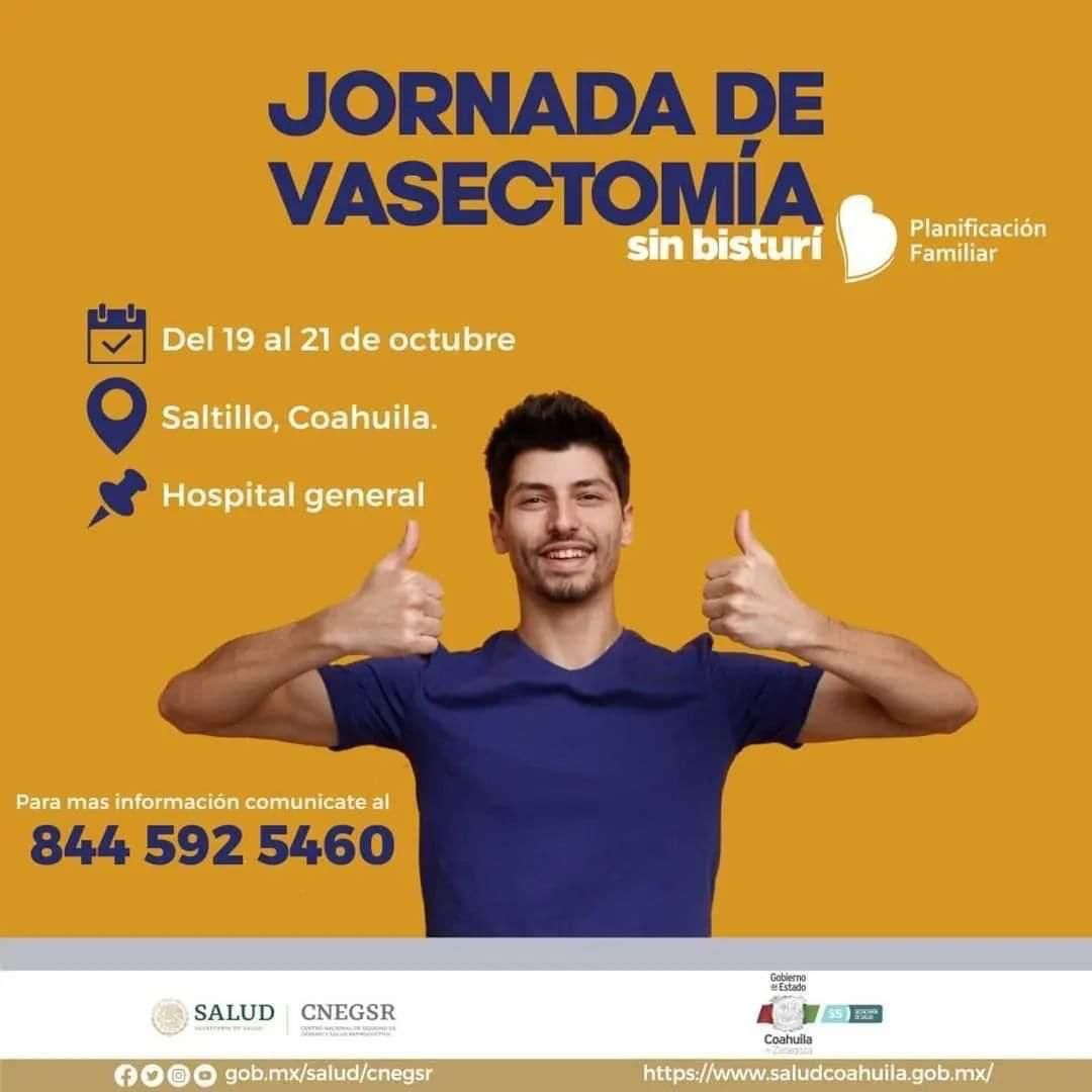 Durante esta jornada de vasectomías en Saltillo se espera atender a 90 hombres, 30 por día. Para mayor información y registro, favor de comunicarse al 844 592 5460. (EL HERALDO)
