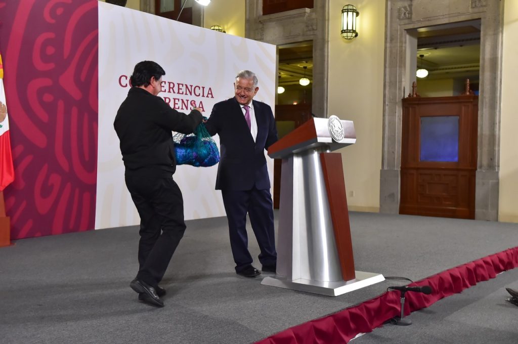 Ciudad de México.- El presidente Andrés Manuel López Obrador recibió –como regalo- una hamaca que fue tejida por dos jóvenes del penal de Tenosique, que fueron detenidos de manera arbitraria.