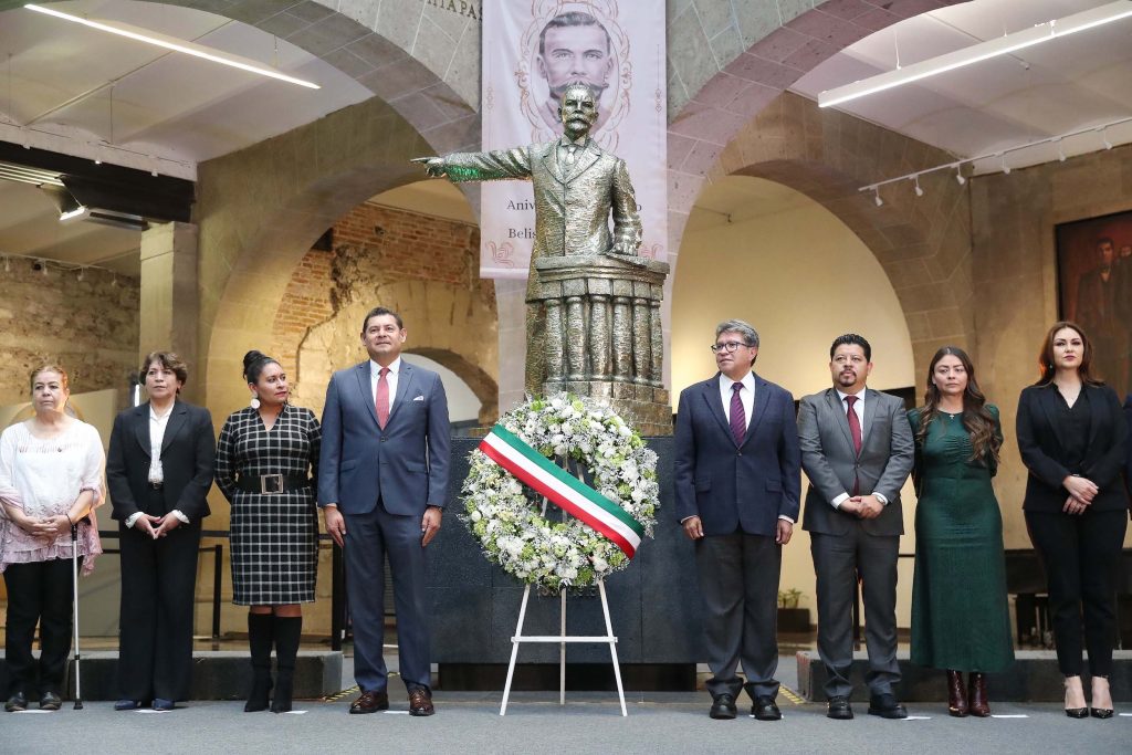 Ciudad de México.- Con motivo del CIX Aniversario Luctuoso del senador Belisario Domínguez, los presidentes de la Mesa Directiva y de la Junta de Coordinación Política del Senado de la República, Alejandro Armenta Mier y Ricardo Monreal Ávila, respectivamente, encabezaron la guardia de honor en homenaje al médico y político chiapaneco.