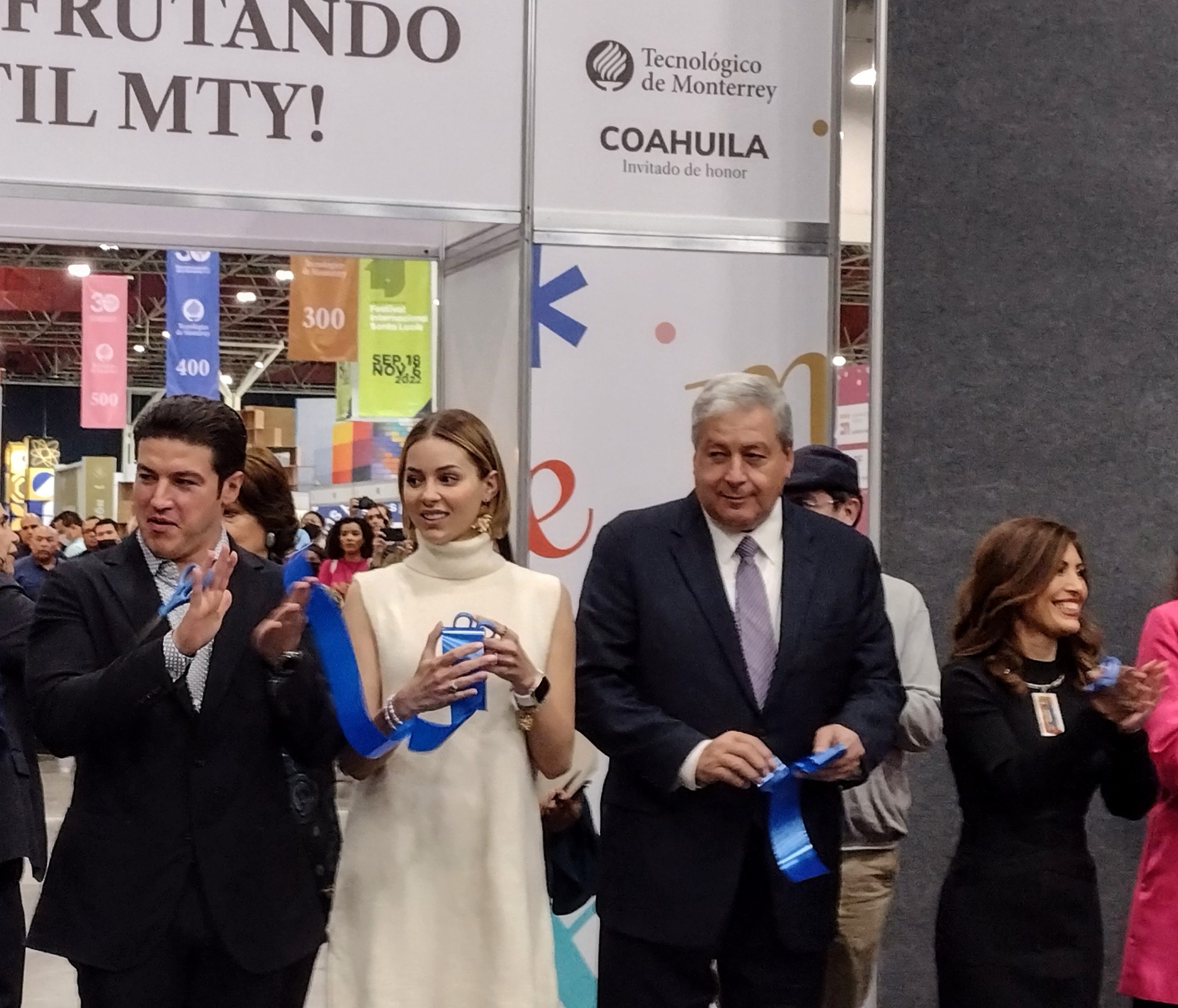 Acompañado de Samuel García Sepúlveda, gobernador de Nuevo León; Luis Donaldo Colosio Riojas, alcalde de Monterrey; Mariana Rodríguez Cantú, de Amar a Nuevo León; Ana Sofía García Camil, secretaria de Cultura de Coahuila y Azucena Ramos Ramos, secretaria de Turismo de Coahuila, el edil saltillense inauguró el stand de la entidad huésped de la FILM 2022.