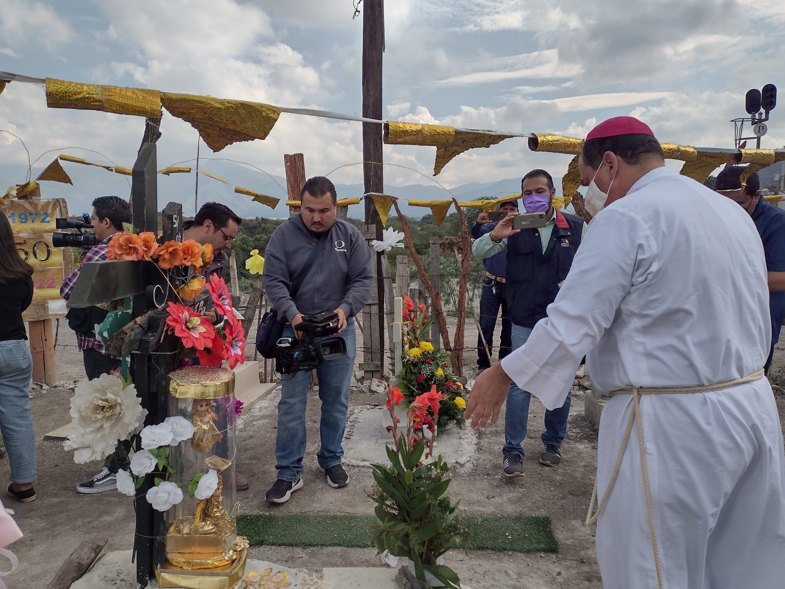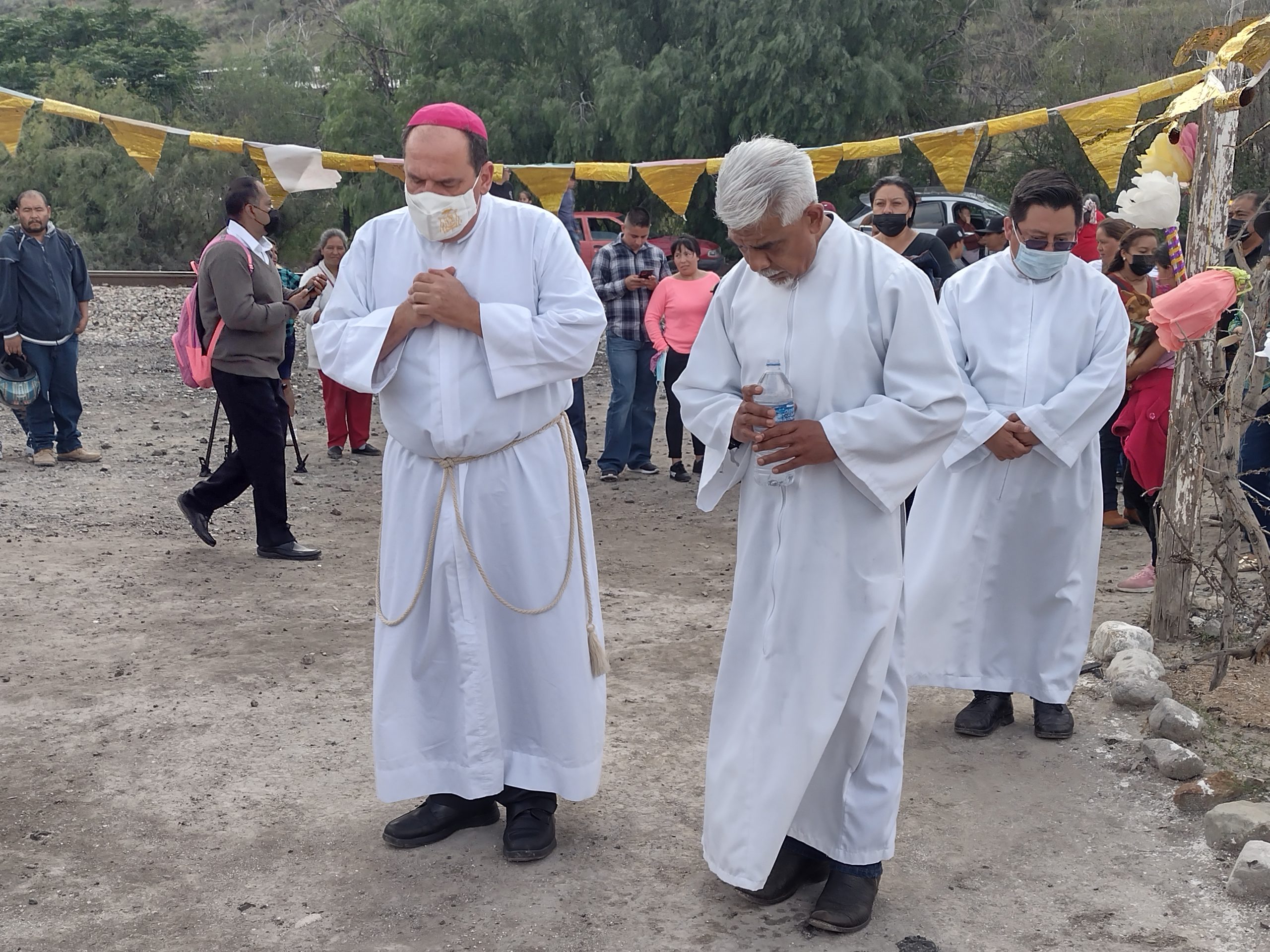 En el camposanto, el jerarca católico pidió por las almas de quienes perdieron la vida en esta tragedia que sucedió hace 50 años y que causó la muerte de un número indeterminado de personas, cuando el 5 de octubre de 1972 el llamado «tren peregrino», que viajaba de Real de Catorce a Saltillo, se descarriló en Puente Moreno.