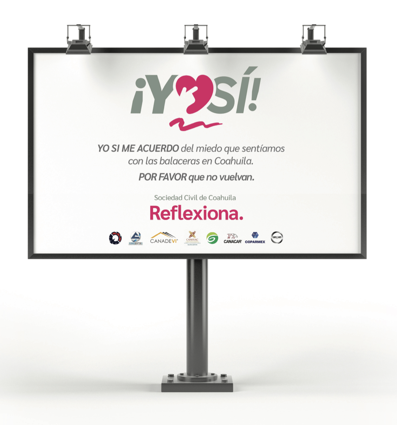 Por todo Saltillo, y muy pronto en todo Coahuila, serán visibles los anuncios espectaculares, desplegados en medios, parabuses, bardas y, por supuesto, redes sociales de la campaña Yo Si, impulsada por organismos de la sociedad civil, cámaras empresariales —Coparmex, Canacintra, Canadevi, Canacar, Canirac— y organizaciones de servicio como el Club Rotario.